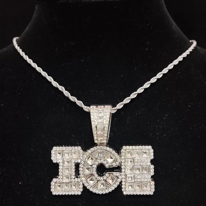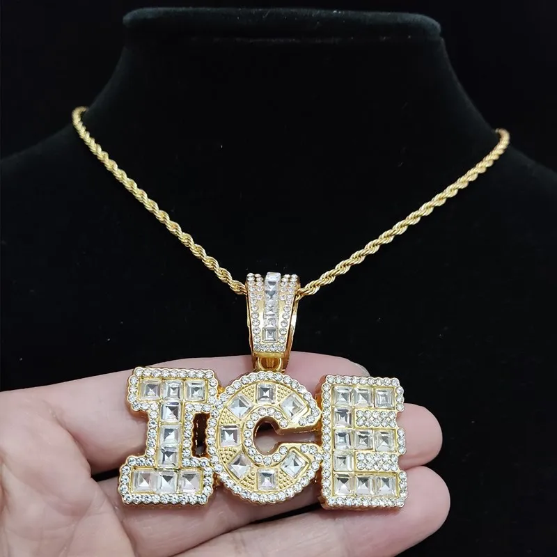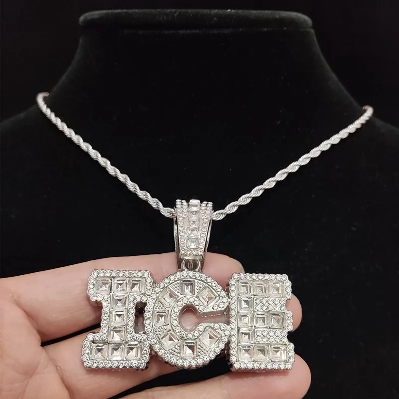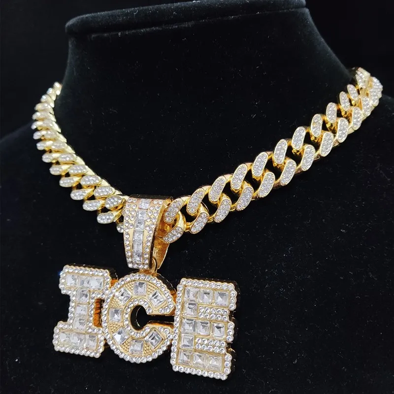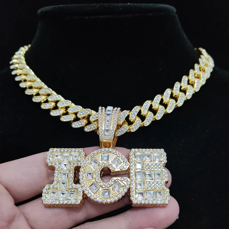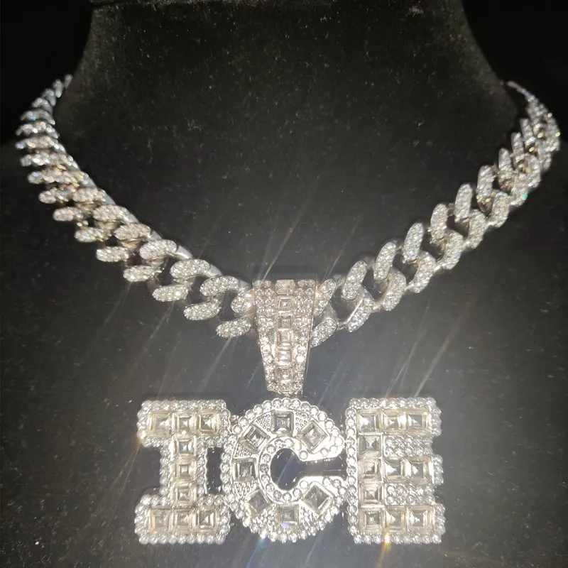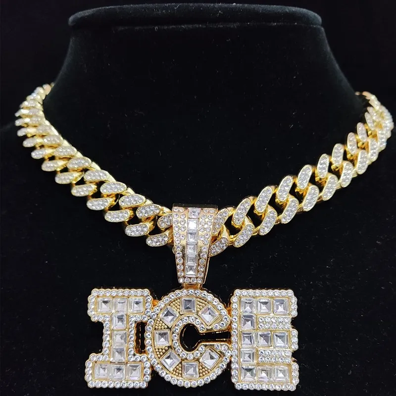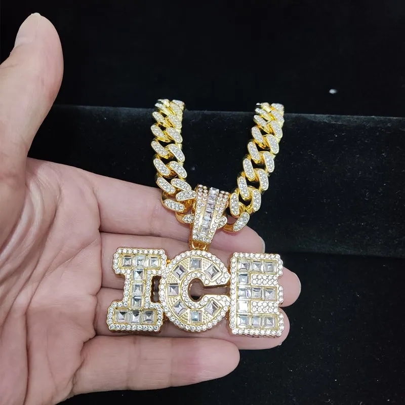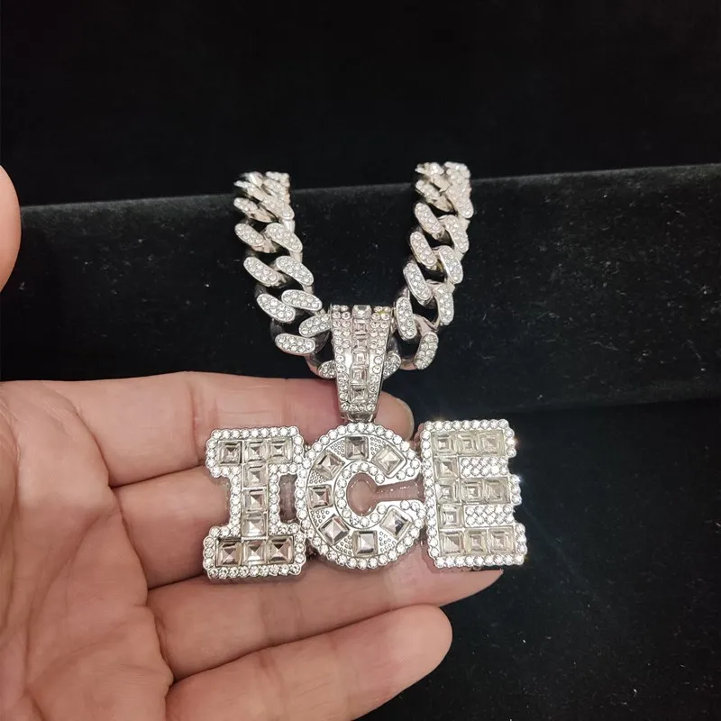 Men Women Hip hop Letter ICE Pendant Necklace With 13mm Cuban Chain Hiphop Iced Out Bling Necklaces Charm jewelry