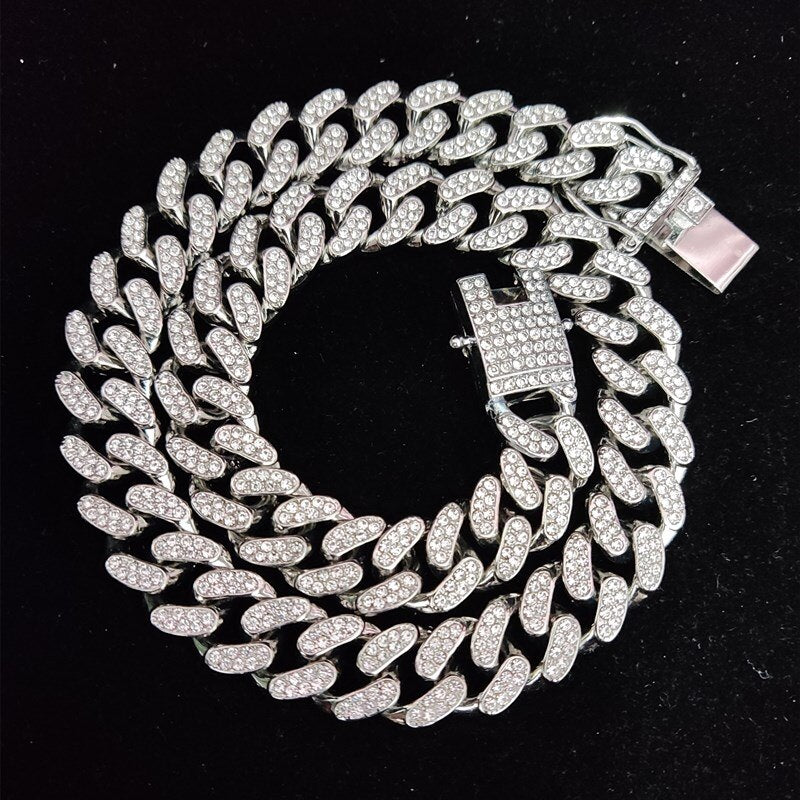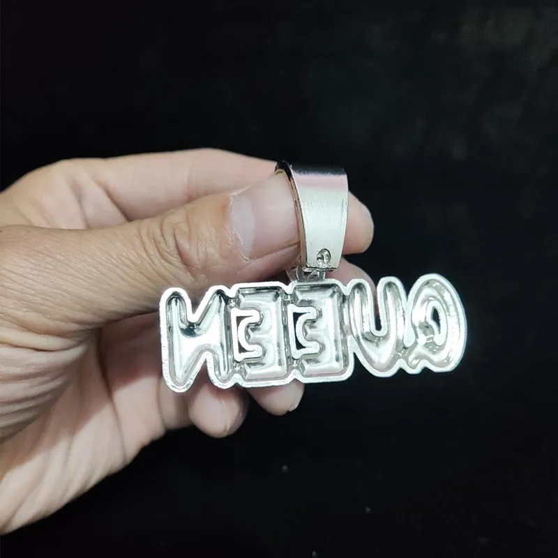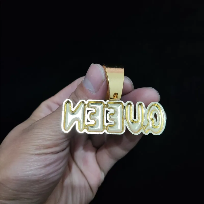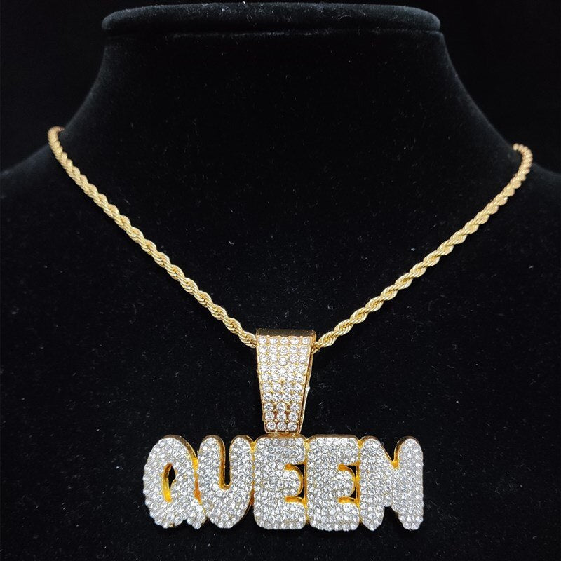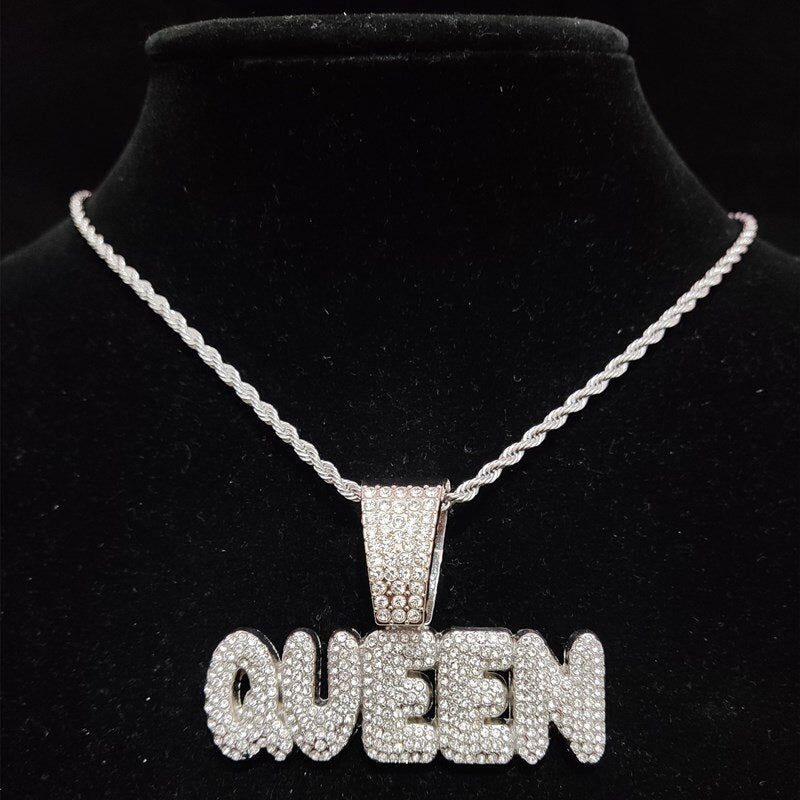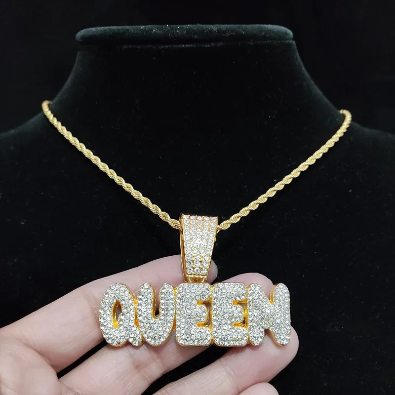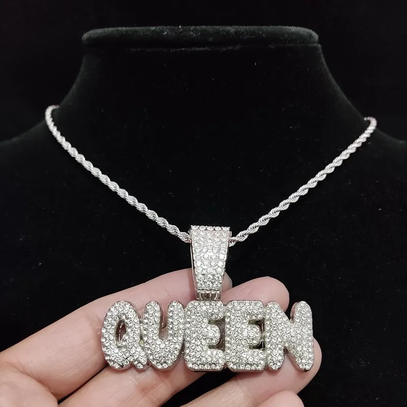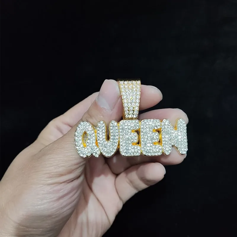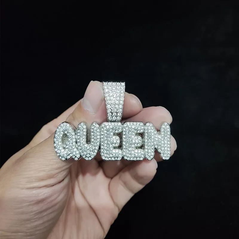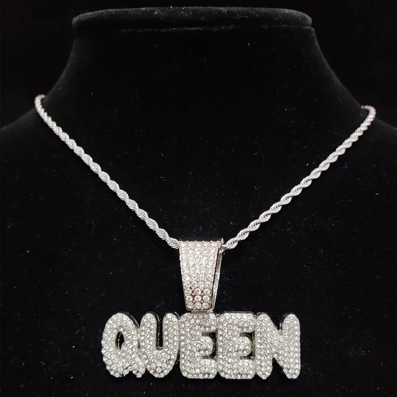 Men Women Hip Hop Queen Letter Pendant Necklace 13mm Crystal Cuban Chain HipHop Iced Out Bling Necklaces Charm Jewelry
