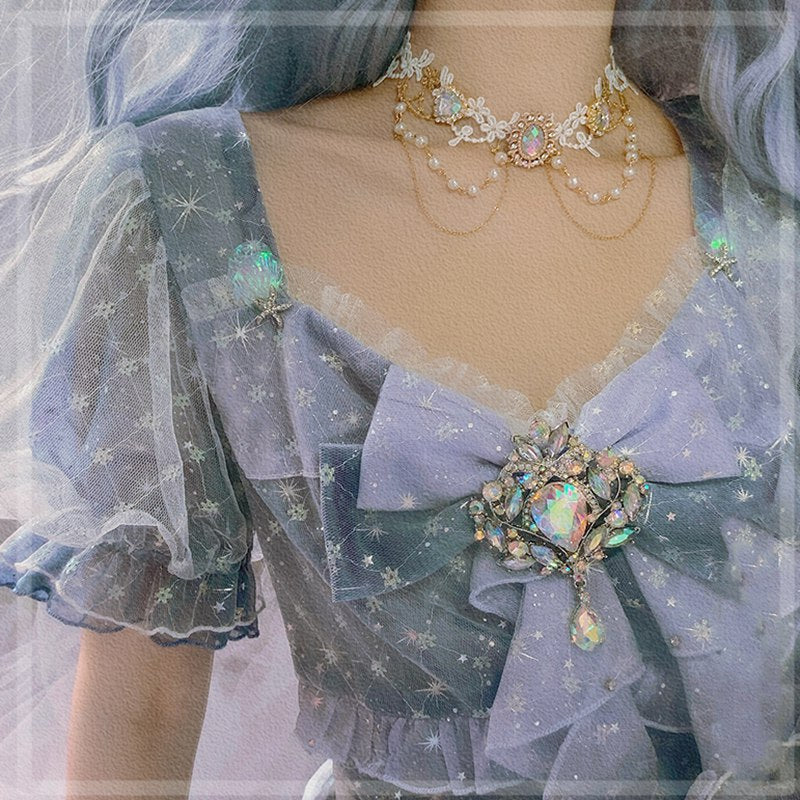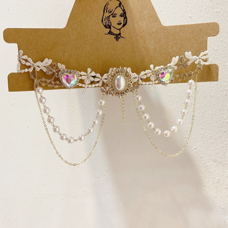 MENGJIQIAO Korean Elegant Baroque Lace Flower Heart Crystal Choker Necklace For Women Girls Pearl Tassel Party Jewelry