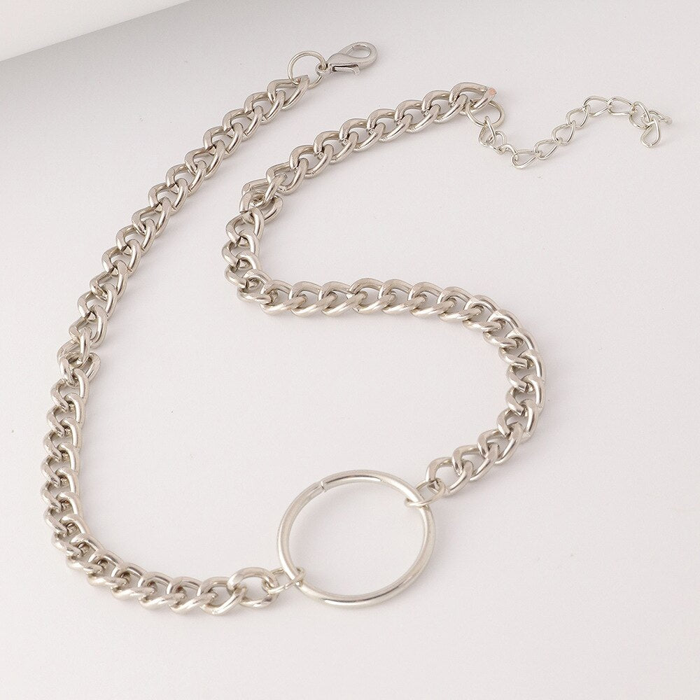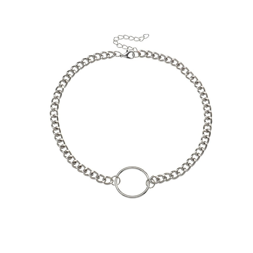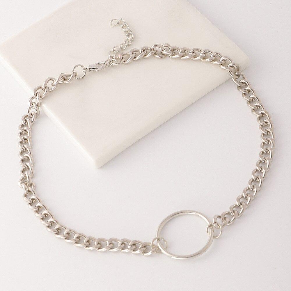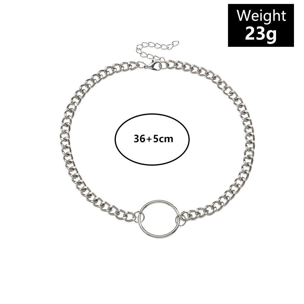 Metal Round Loop Necklaces Neck Chain Girls Sweet Cool Simple Geometric Choker Necklaces Jewelry For Womens Party
