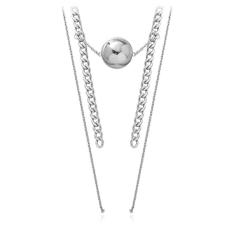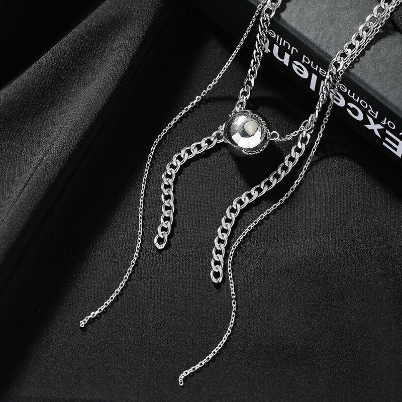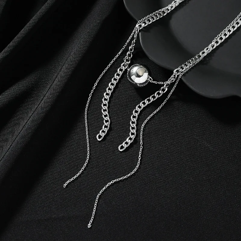Minar Personality Metallic Ball Pendant Necklaces for Women Girl Chunky Curb Chain Tassel Chokers Necklace Statement Jewelry