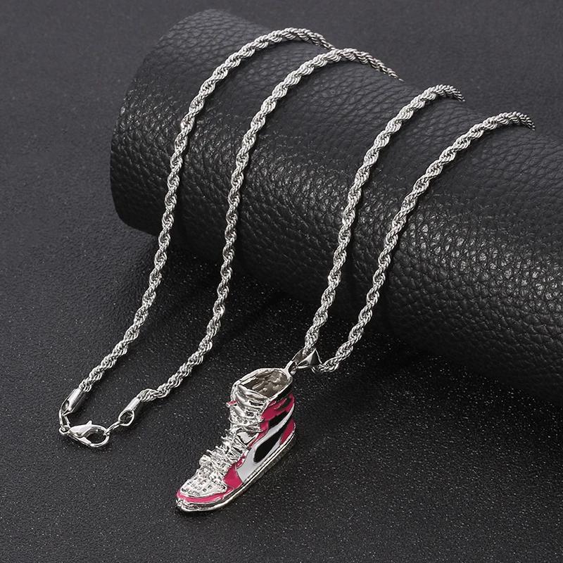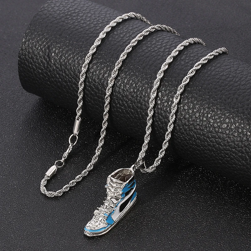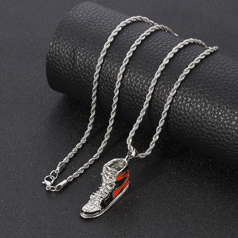 Mini Hip-hop Sneaker Pendant Necklace Cool Collar Sports Shoes Necklaces Jewelry With Box Chain For Him Gift