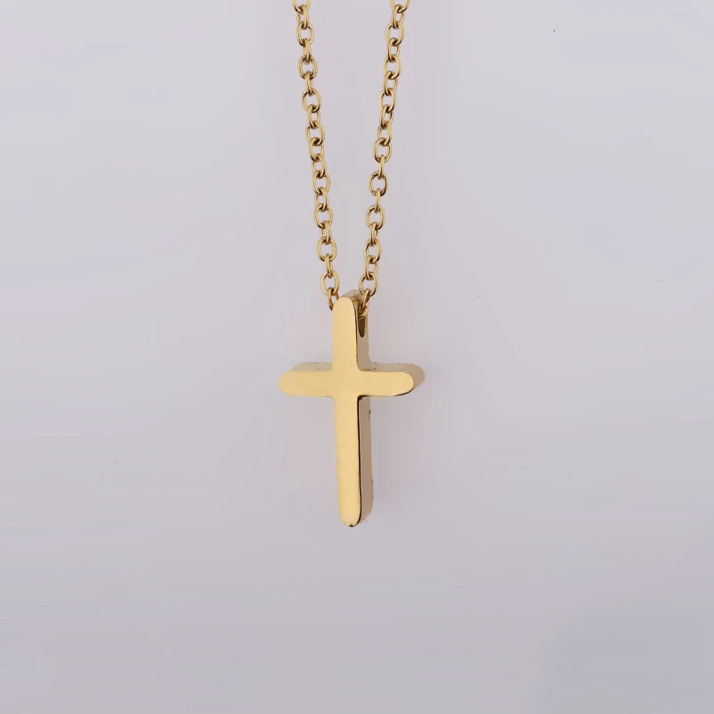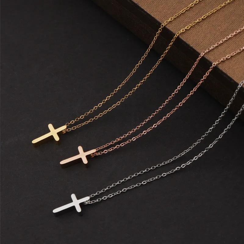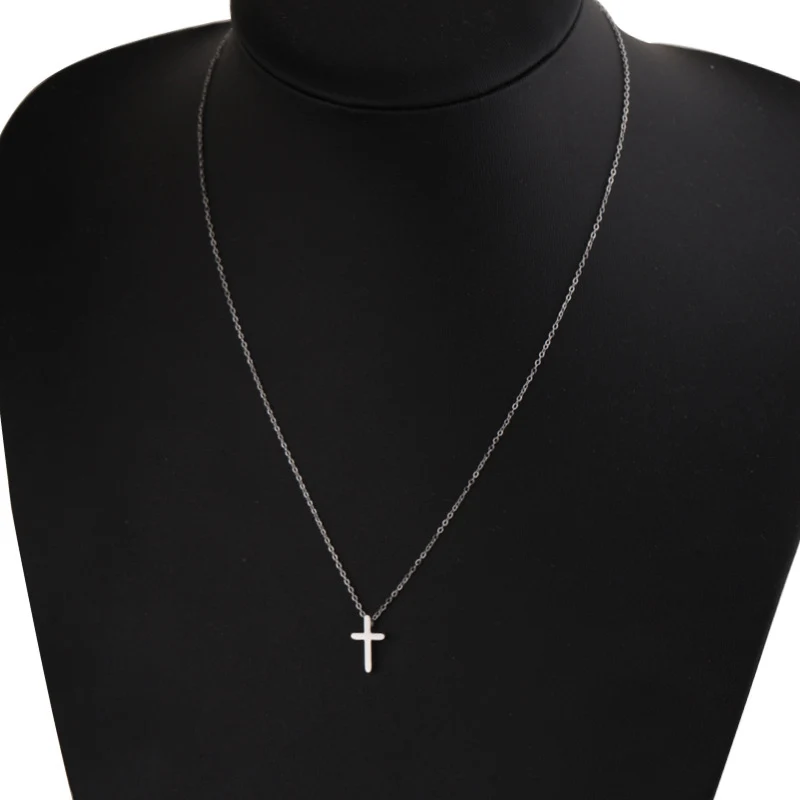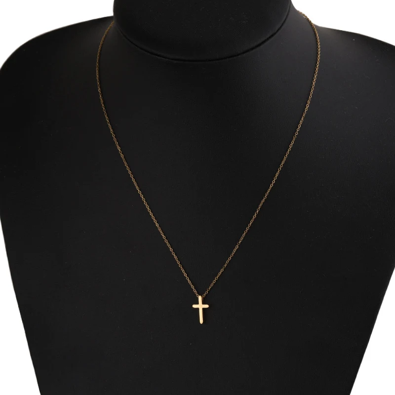 Mini Simple Stainless Steel Cross Pendant Necklace For Women Men Gold Color Chain Choker Prayer Female Jewelry