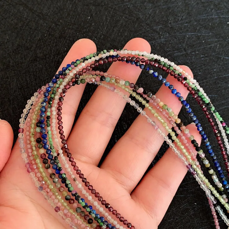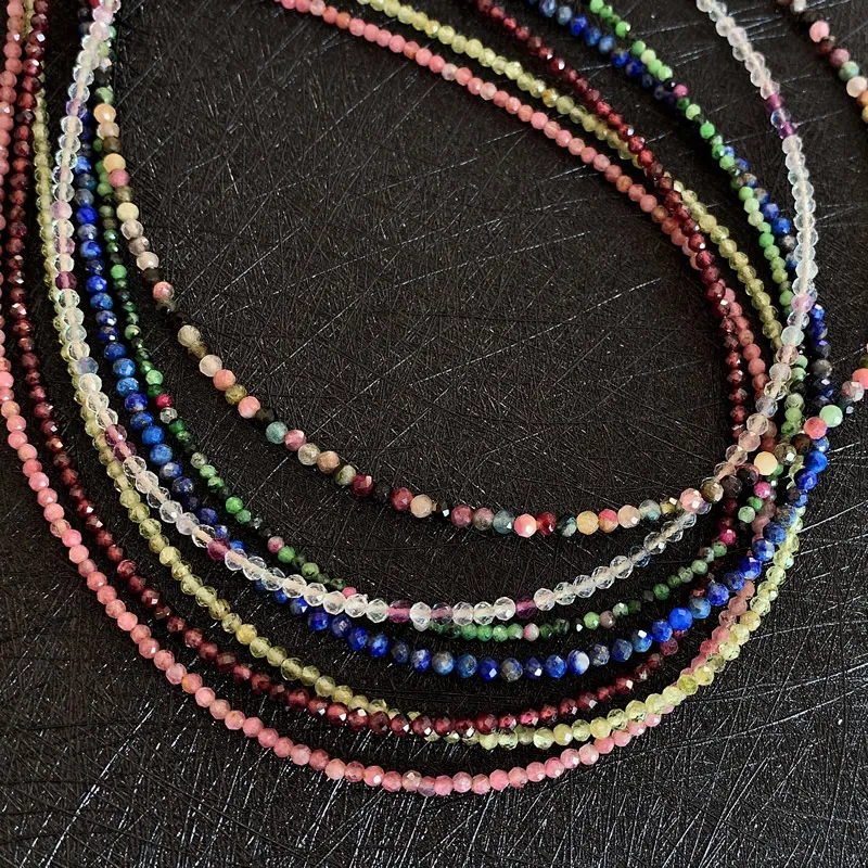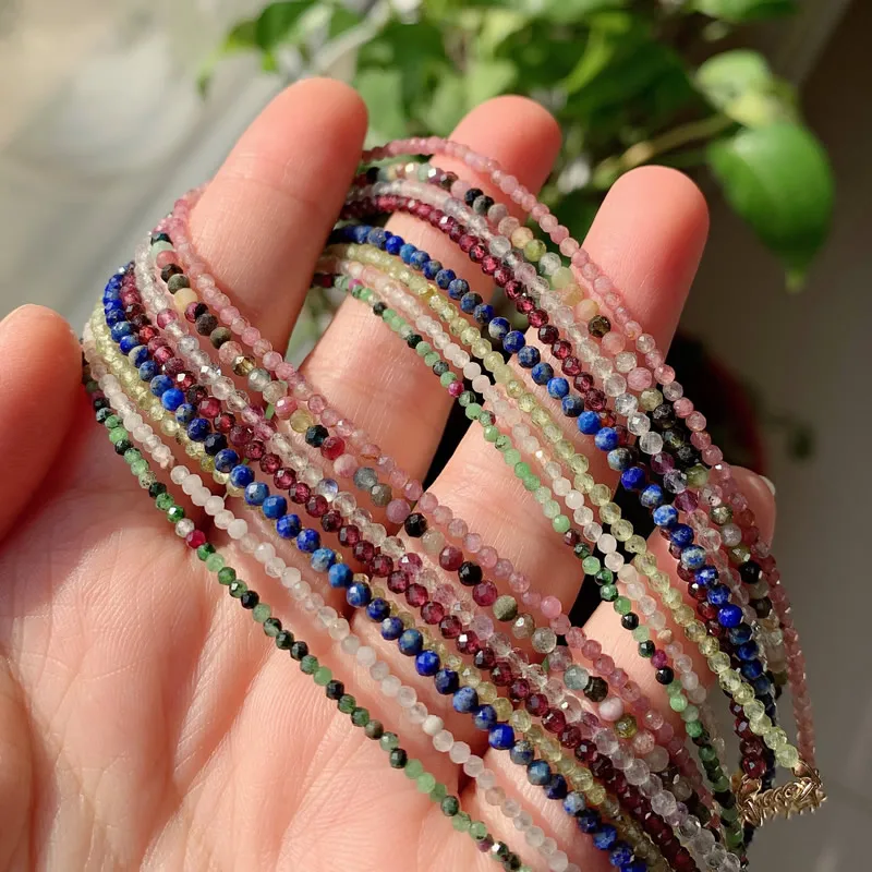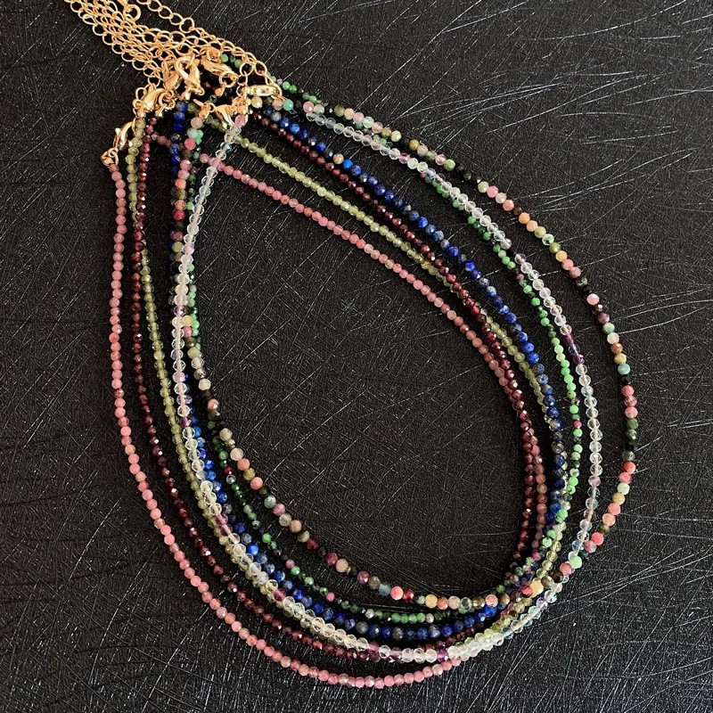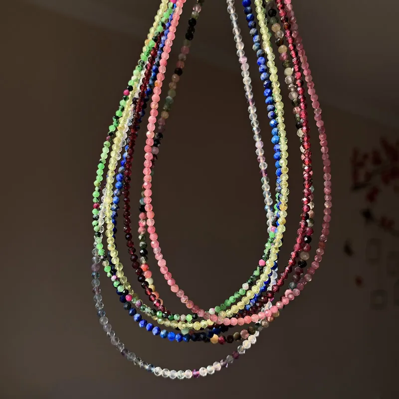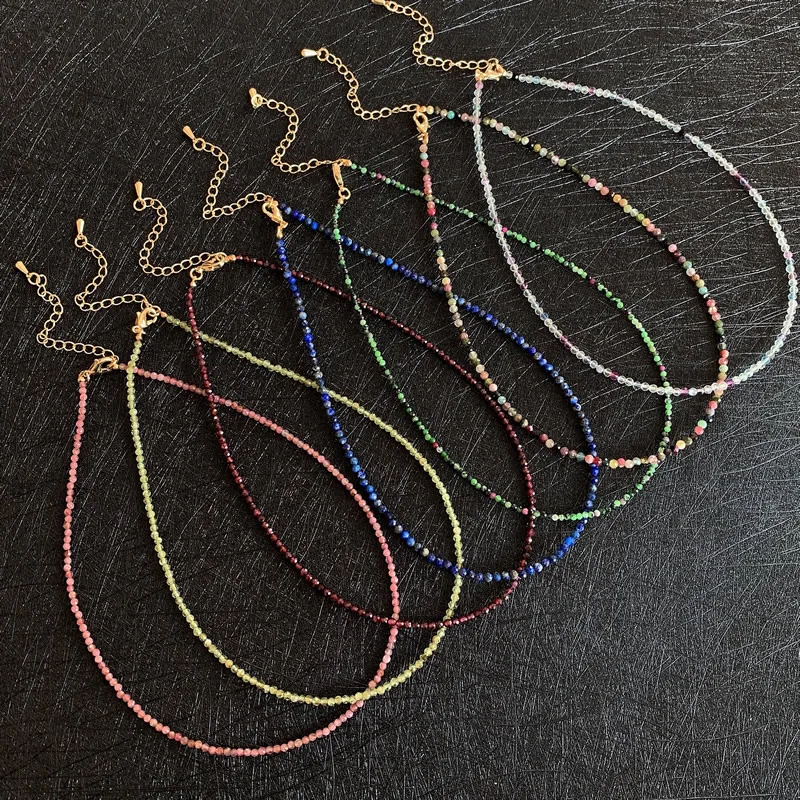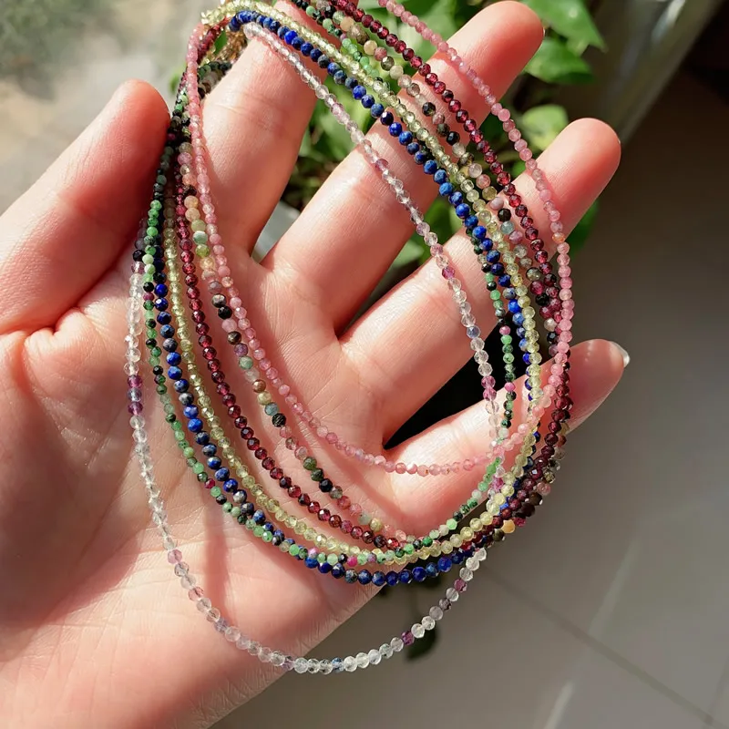 Mini Small Crystal Stone Necklace Short Collar Tiny Strand Elegant Natural Garnets Lapis Pink Tourmalines Quartz Choker Necklace