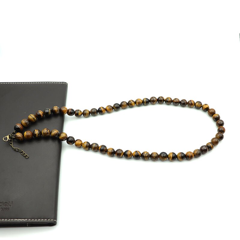 Minimalist 10mm Tiger eye Necklace Original Natural Stone Necklace Men Women 22 Inches Long Necklace Onyx Buddha Beads Necklace