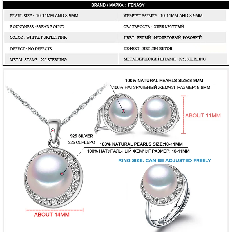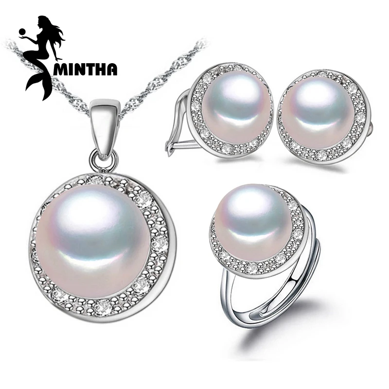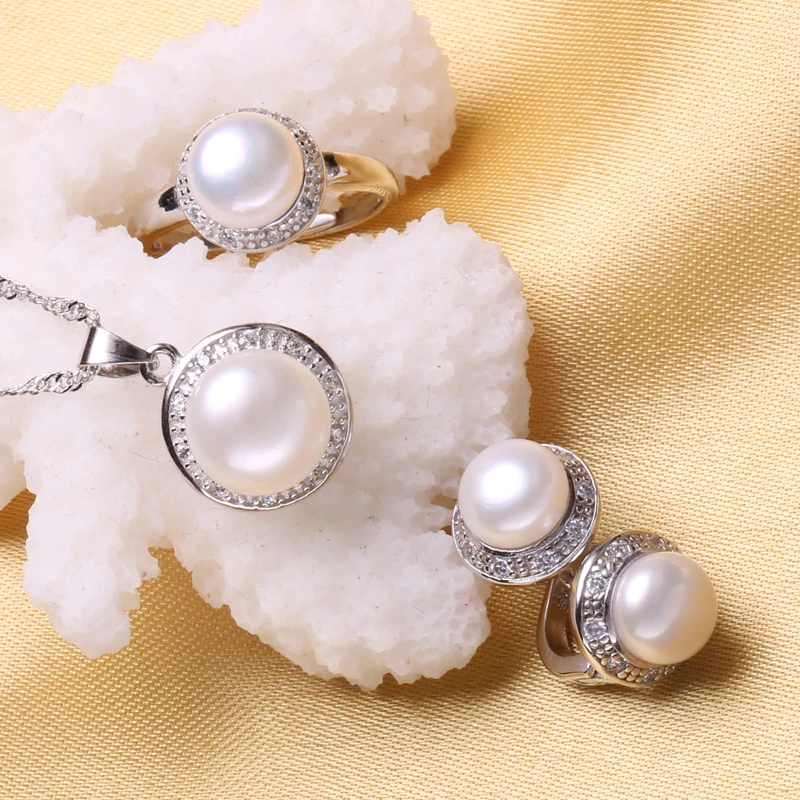 Pearl Jewelry wedding engagement jewelry sets,Natural Pearl pendant Necklace women/party earrings female/silver ring