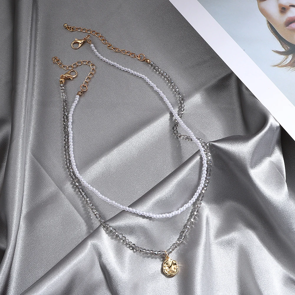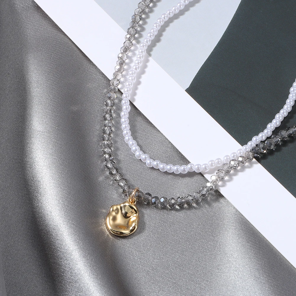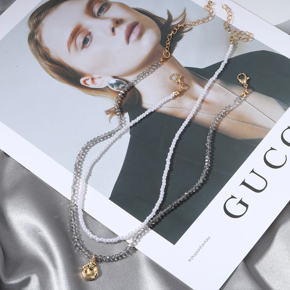 Miwens ZA Badge and Imitation Pearl Necklace Set For Women Shiny Heart Pendant Necklace Set Clavicle Jewelry Accessories