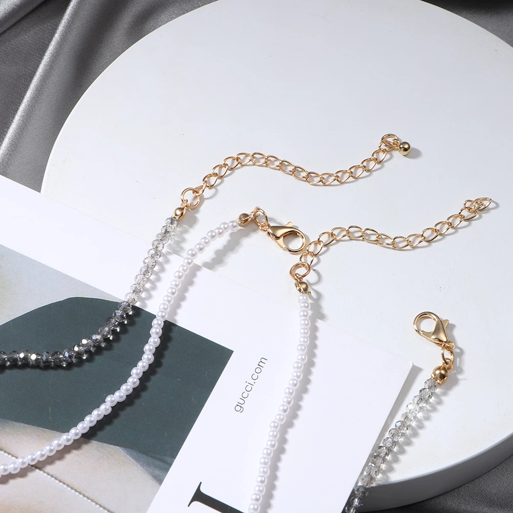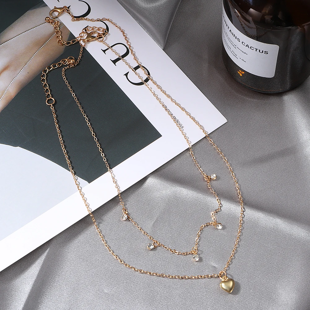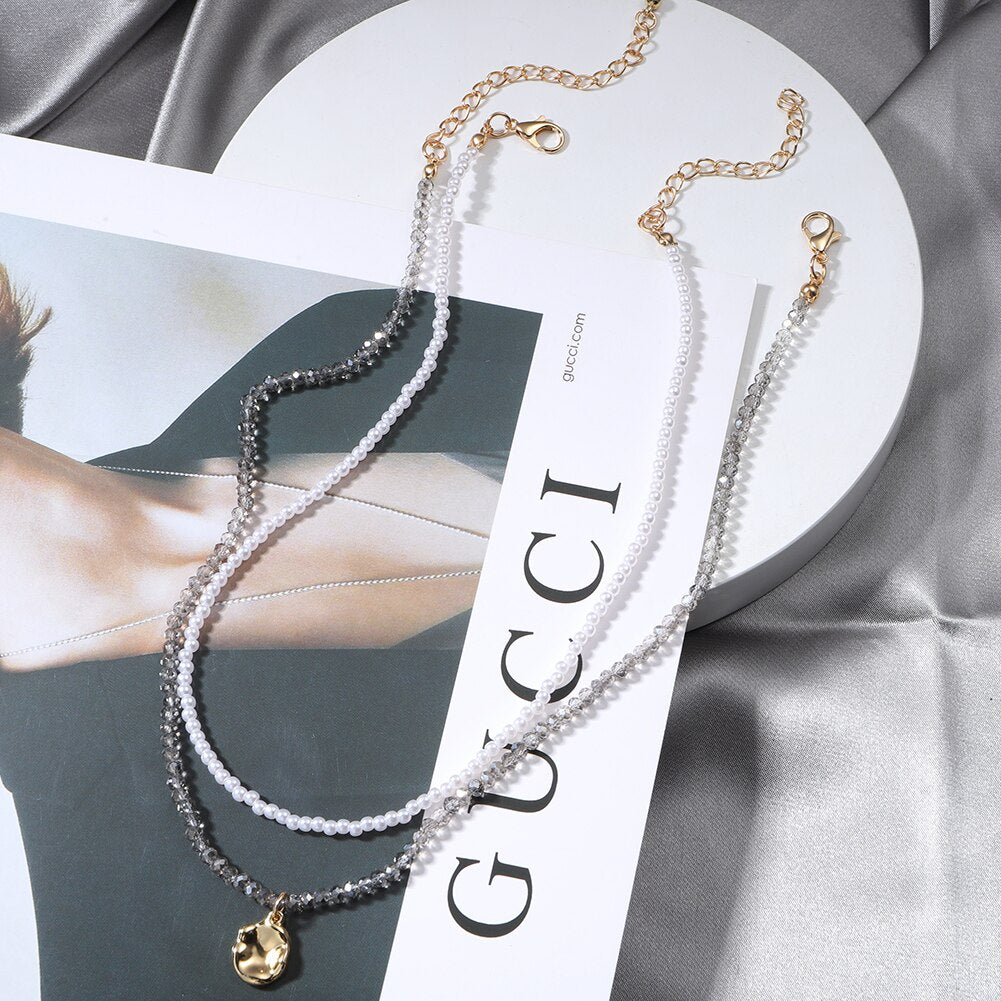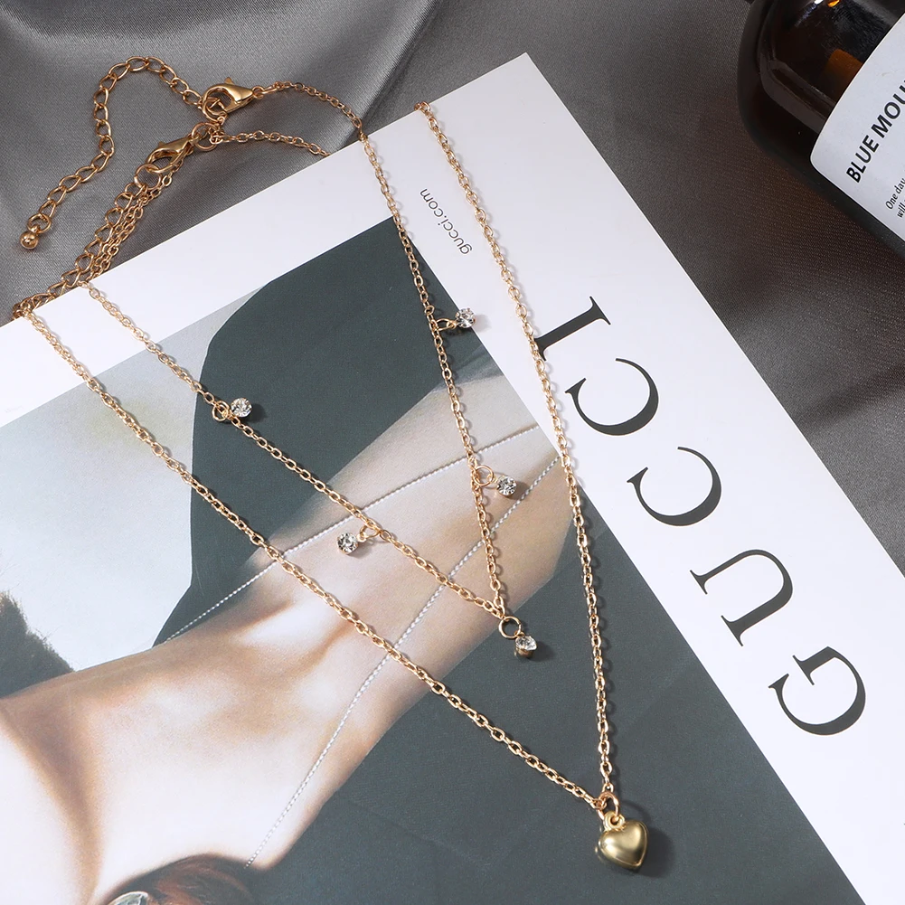 Miwens ZA Badge and Imitation Pearl Necklace Set For Women Shiny Heart Pendant Necklace Set Clavicle Jewelry Accessories