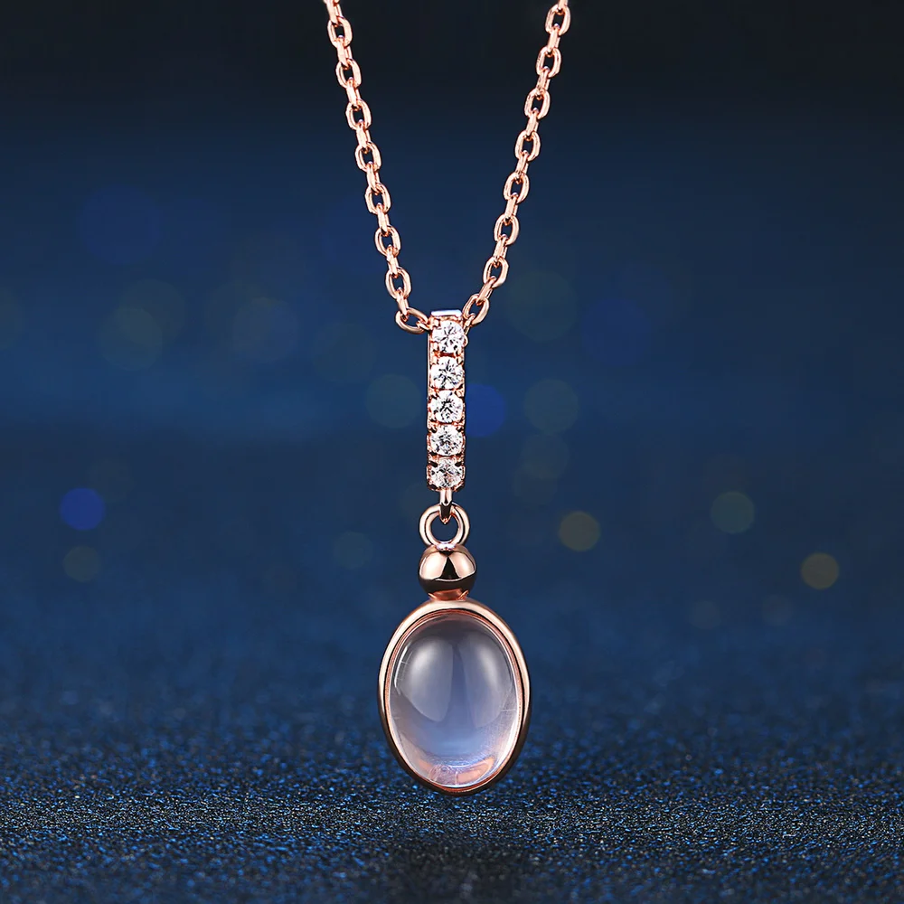 MBNI009 Pink Natural Gemstone Rose Quartz Necklace & Pendant 925 Sterling-Silver-Jewelry Rose Gold Plated Fine For Women