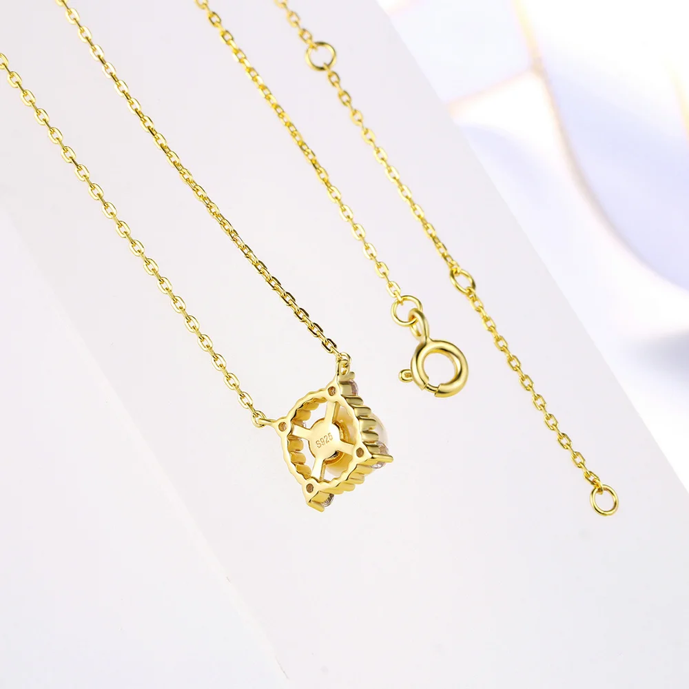 MBNI028 7~8mm Round Natrual Pearl Necklace & Pendant 925 Sterling Silver 14K Yellow Gold Plated Fine Jewelry