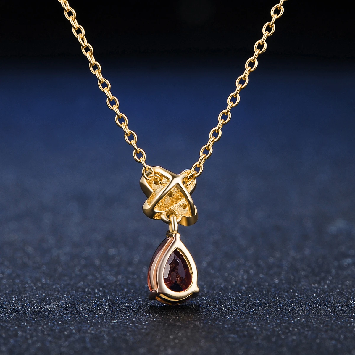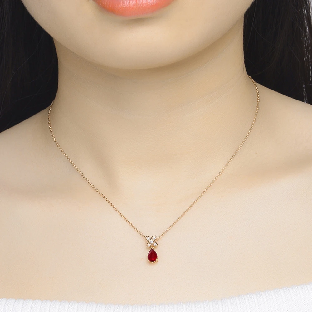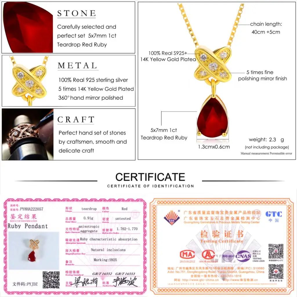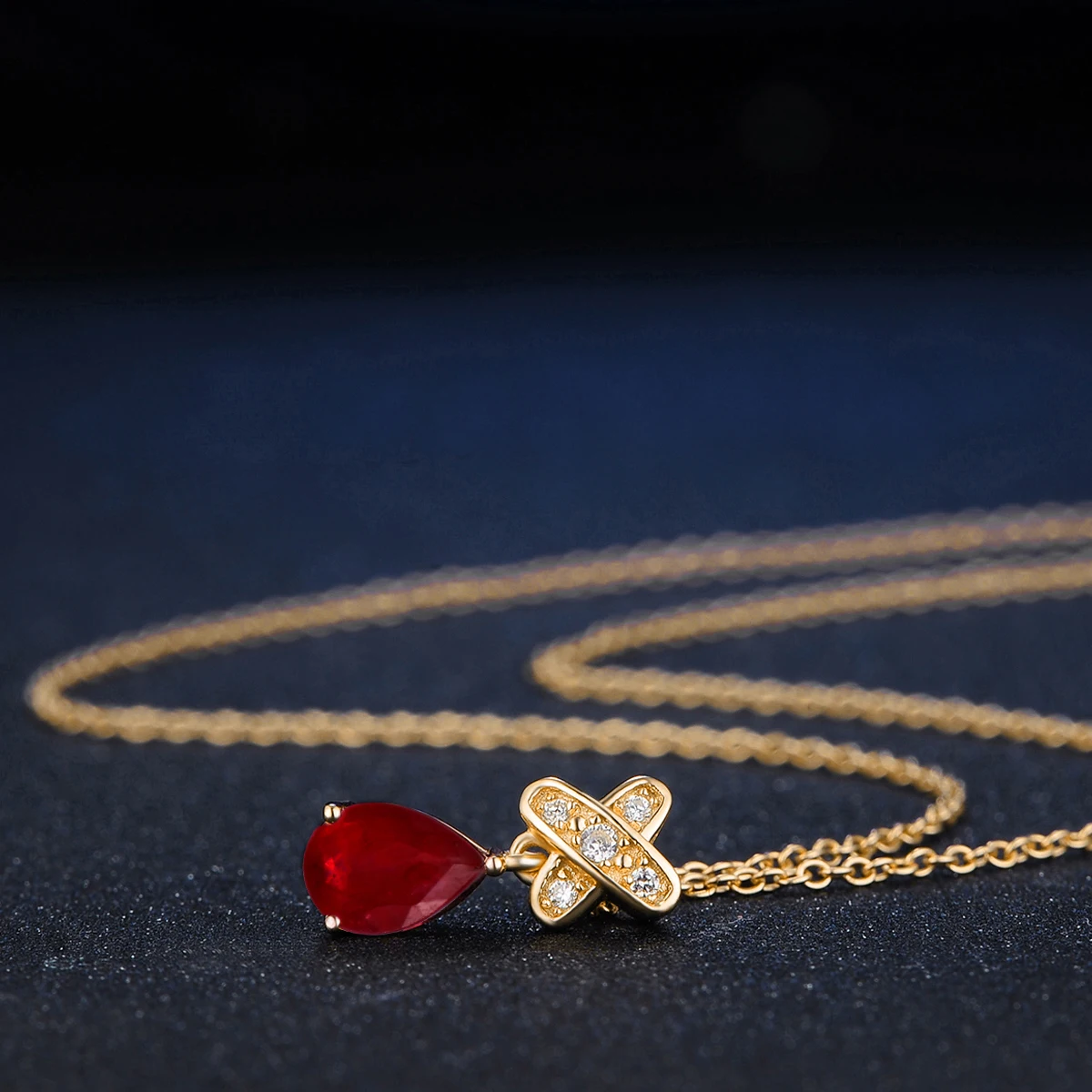 MBNI034 Natural Gemstone Elegant Ruby Teardrop Necklace & Pendant 925 Sterling Silver Yellow Gold Plated Fine Jewelry