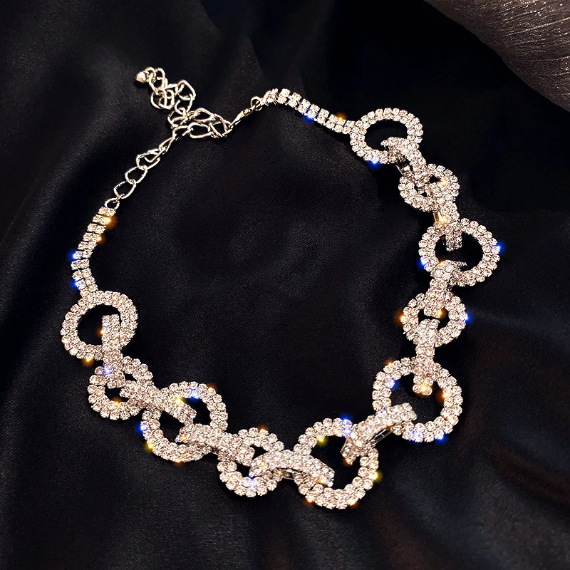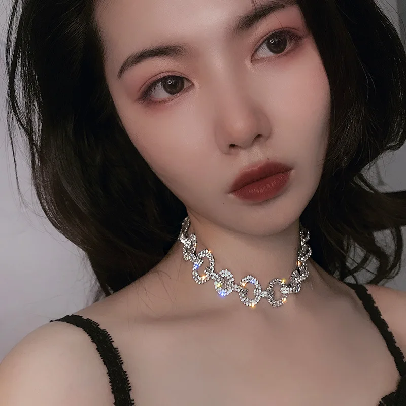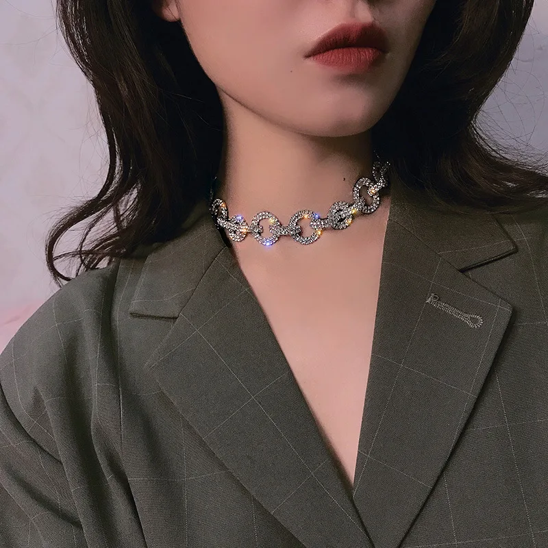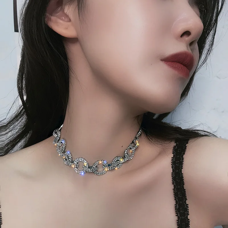 MOGAKU Shiny Full Crystal Chokers Necklaces for Women Bling Exquisited Clavicle Chains Necklace Party Nightclub Jewelry