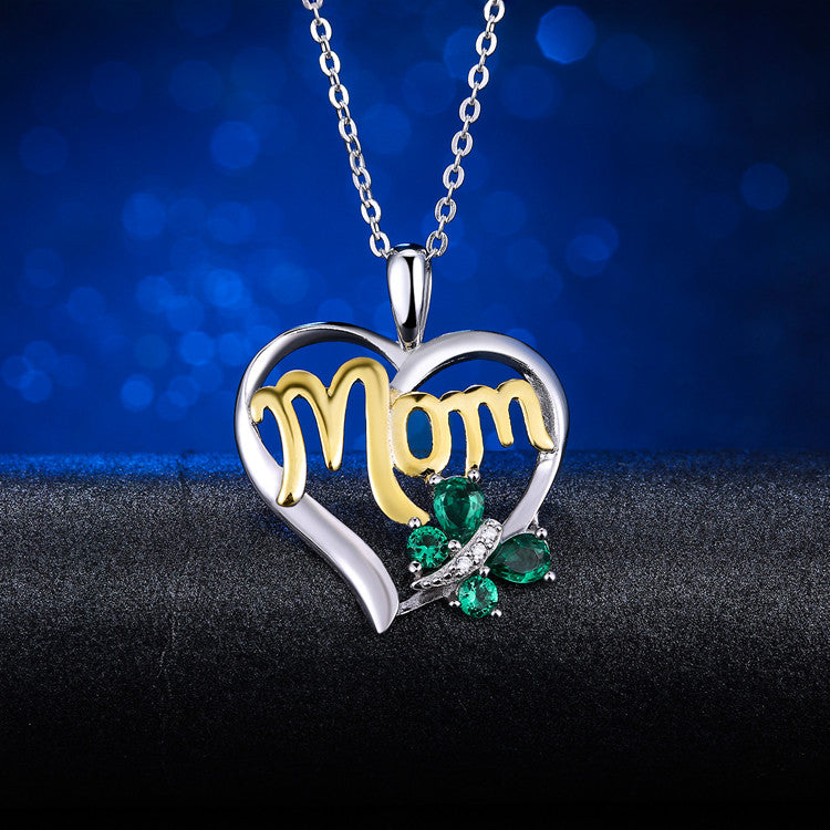 925 Sterling Silver Infinity Mom Letter Necklace with Created Emerald Butterfly Necklace Mother D Gift Family Jewelry