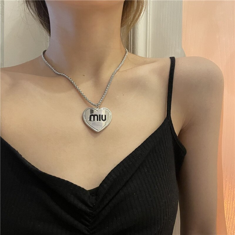 MONA Tourmaline Stone Beads Falling Jade Plate Green Love Pendant Necklace Ins Temperament Stacking Letter Necklace