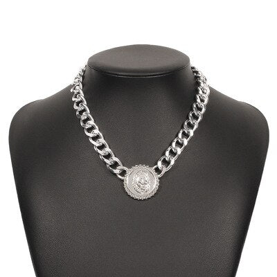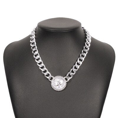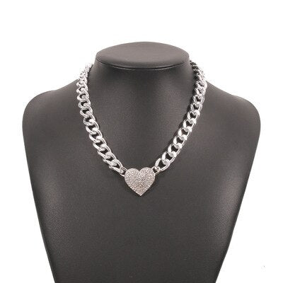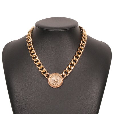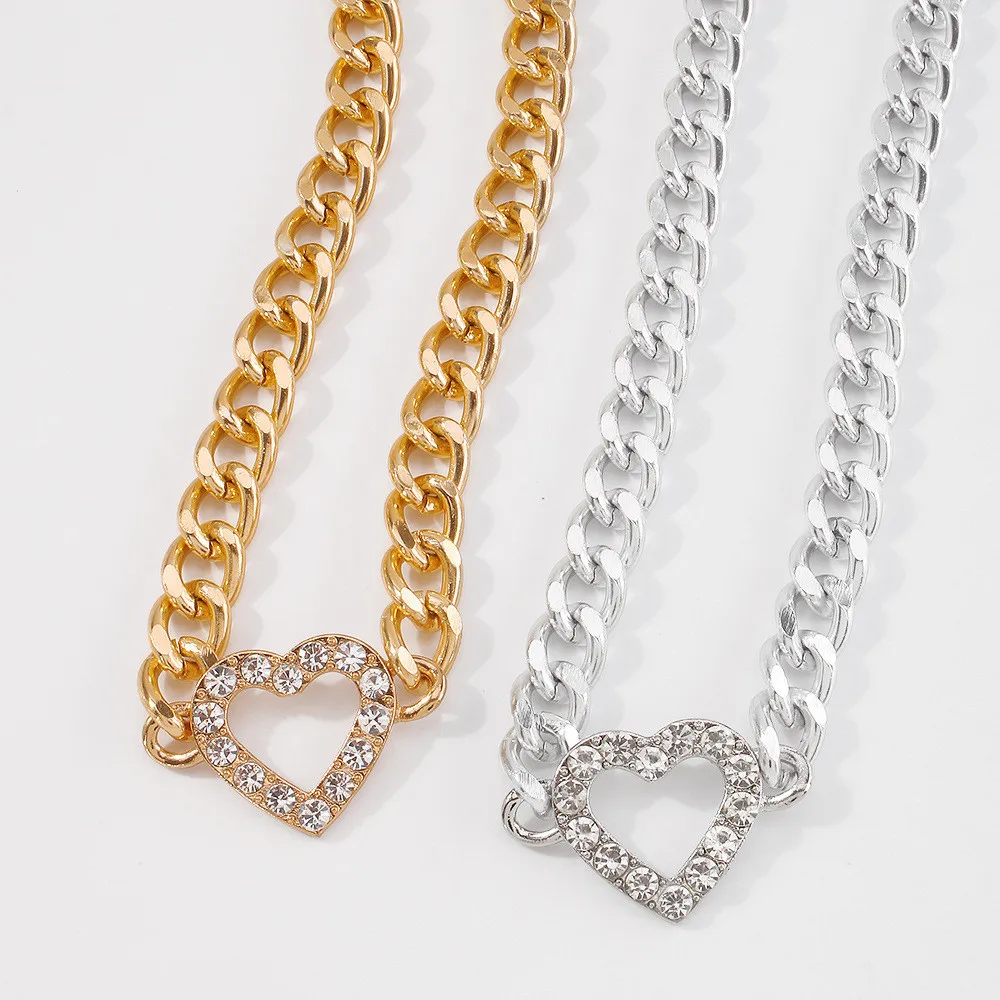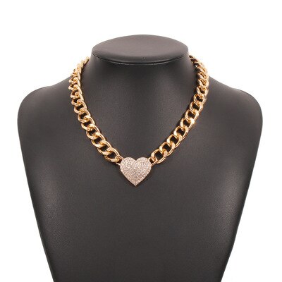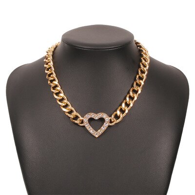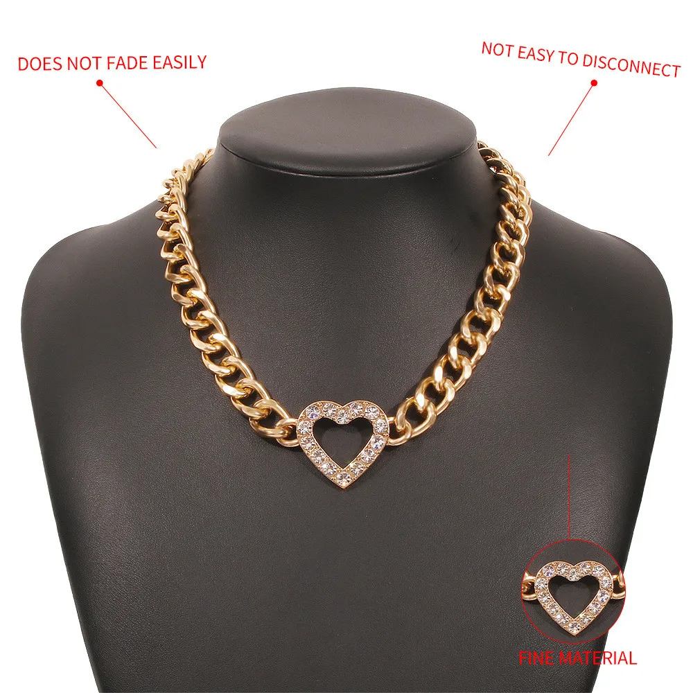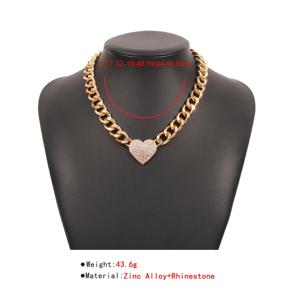 More Styles Metal Gold Thick Chain Necklace Lion Head Choker Necklace for Girl Rhinestone Heart Pendant Necklace Hip Hop Jewelry