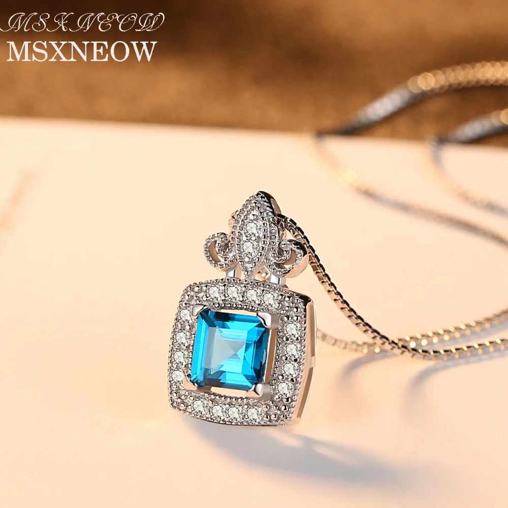 6mm*6mm Oval Shape Solitaire Natural Sky Blue Topaz Stone Pendant 925 Sterling Silver Charms Chain Necklace for Women