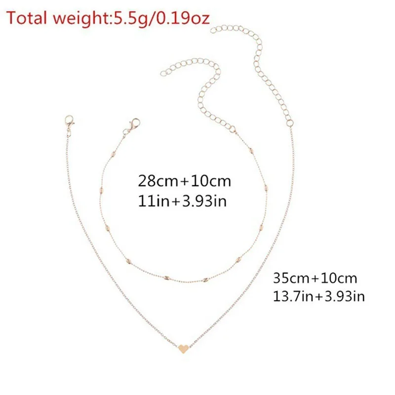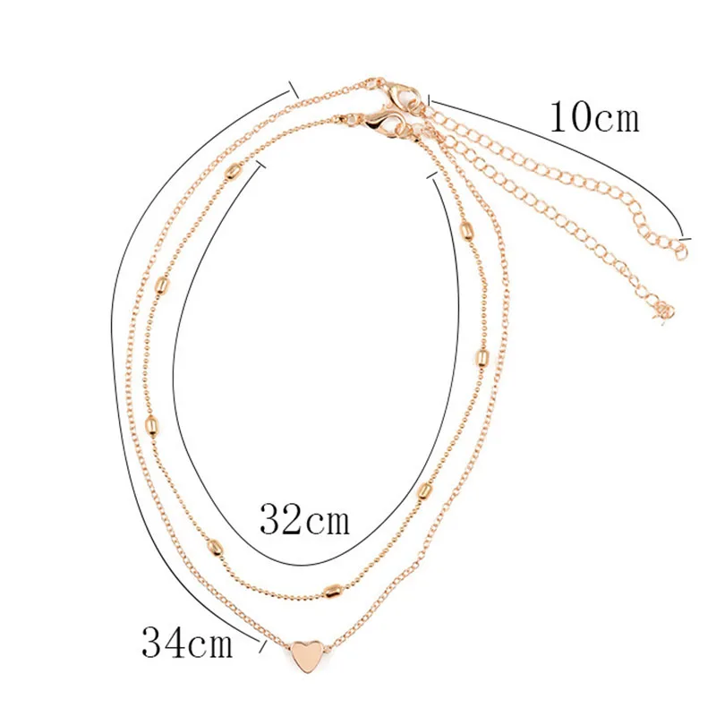 Multi-layer Beads Heart Nacklace Pendant For Women Silver/Gold Color Choker Necklace Crystal Women Jewelry