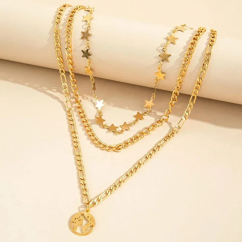 Multilevel Elegant Gold Map Pendant Jewelry For Women Wedding Tassel Star Chain Choker Necklaces N0274