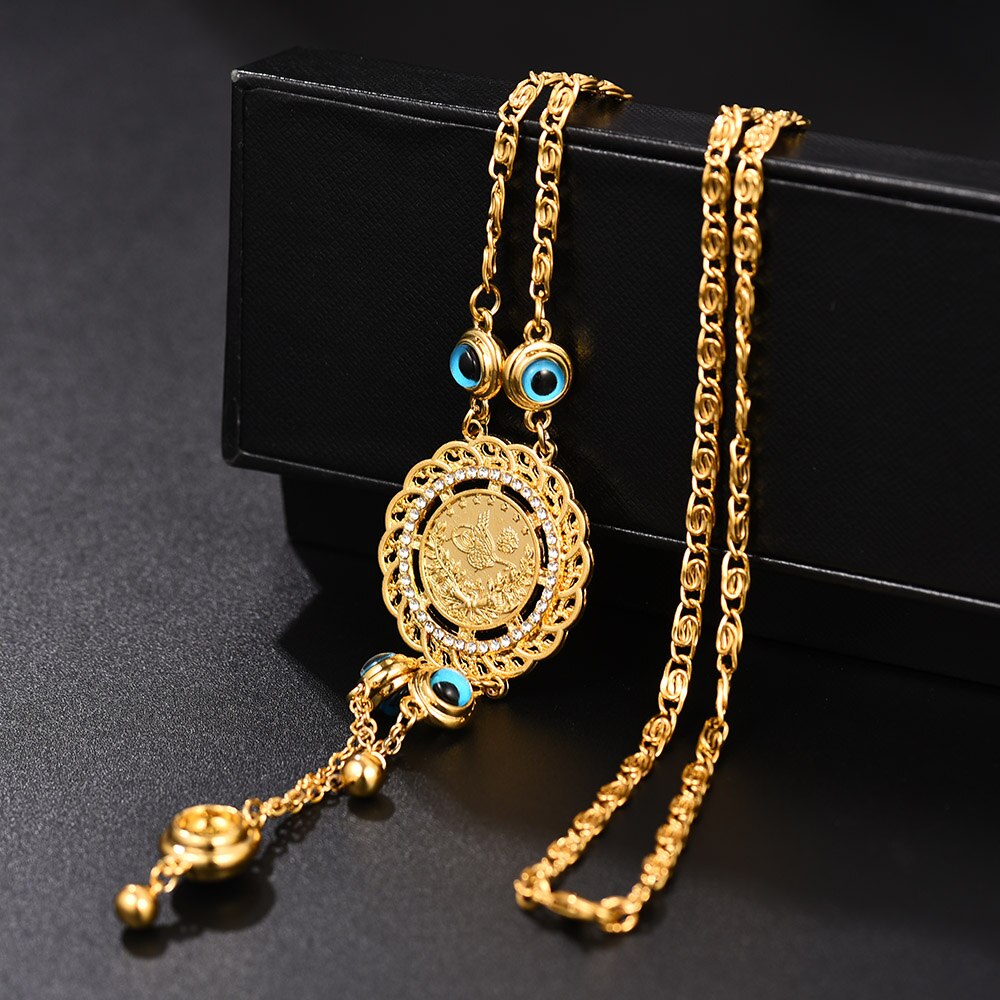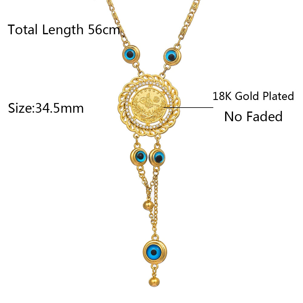 Muslim Islam Allah Chain Necklace Gold Turkey Blue Eye Fatima Palm Necklac for Women Jewelry Good Luck