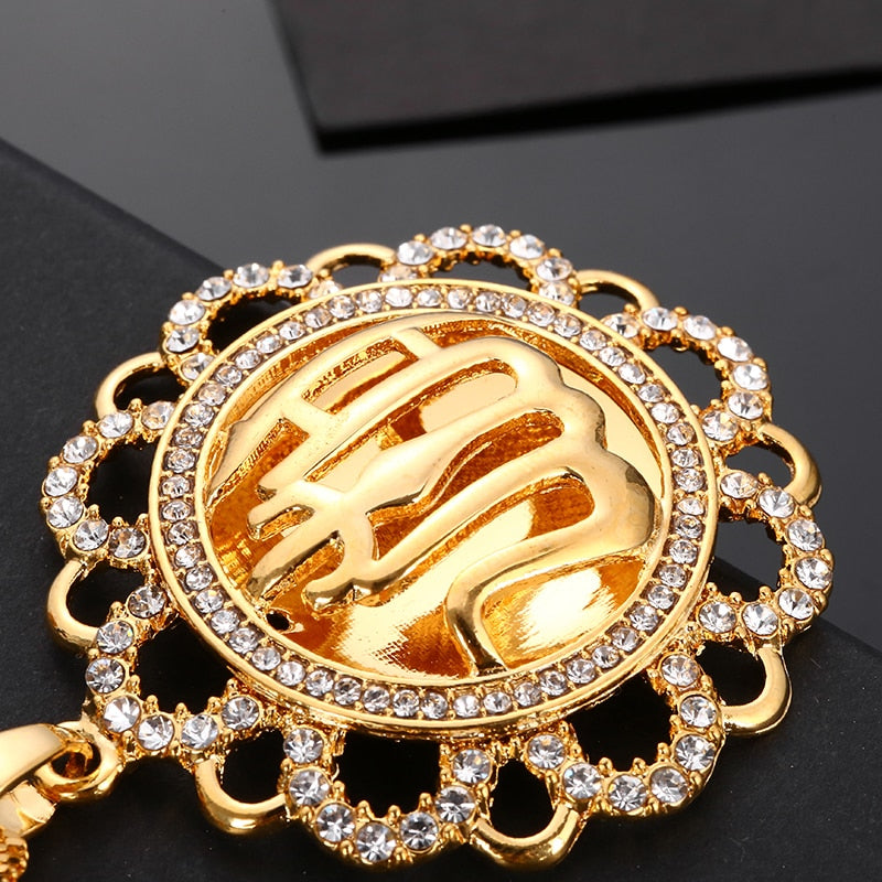 Muslim Islamic Allah Pendant Middle East Necklaces for Women Religious Totem Full Rhinestone Necklace Arabia Crystal Jewelry