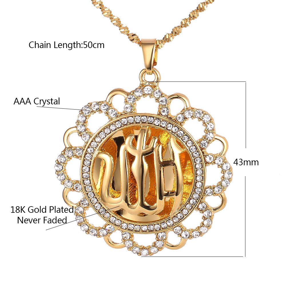 Muslim Islamic Allah Pendant Necklaces For Men And Women Religious Totem Full Rhinestone Necklace Arabia Crystal Jewelry