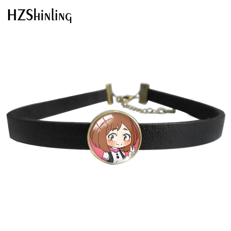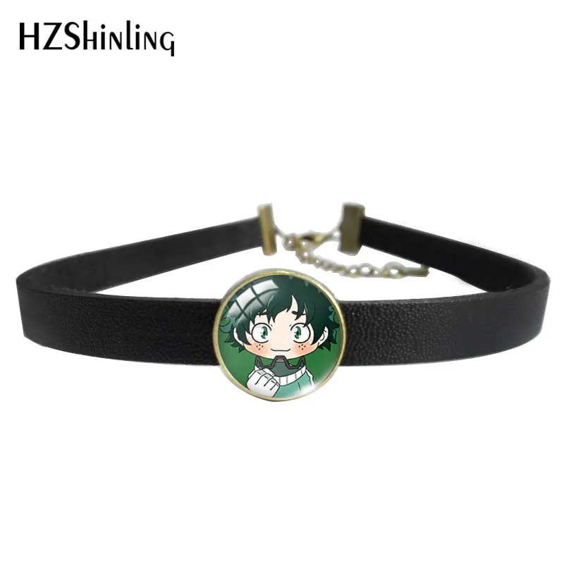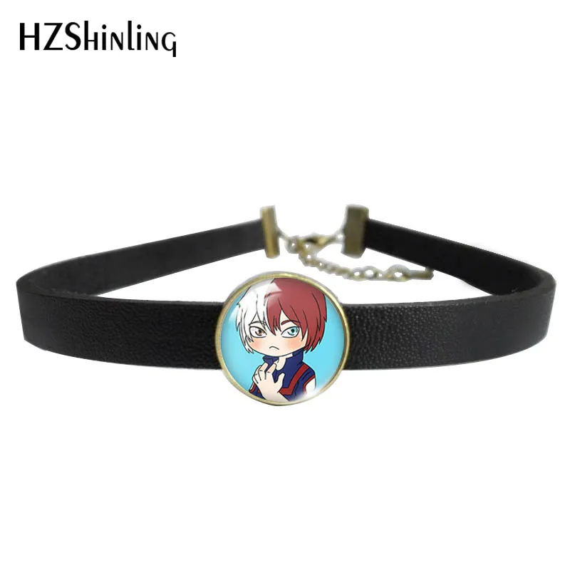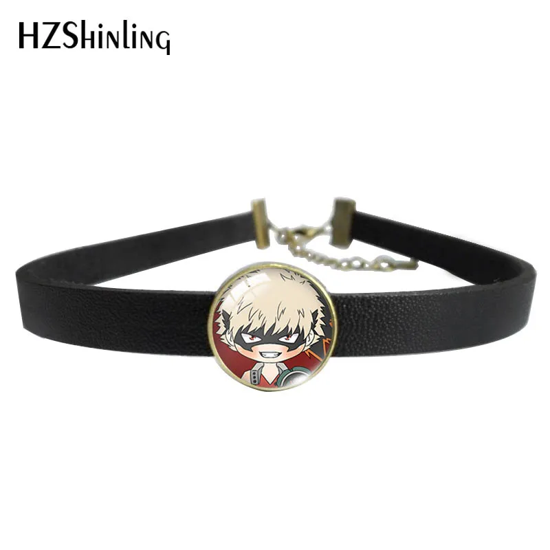 My Hero Academia Cartoon Anime Leather Choker Necklace Glass Cabochon Jewelry