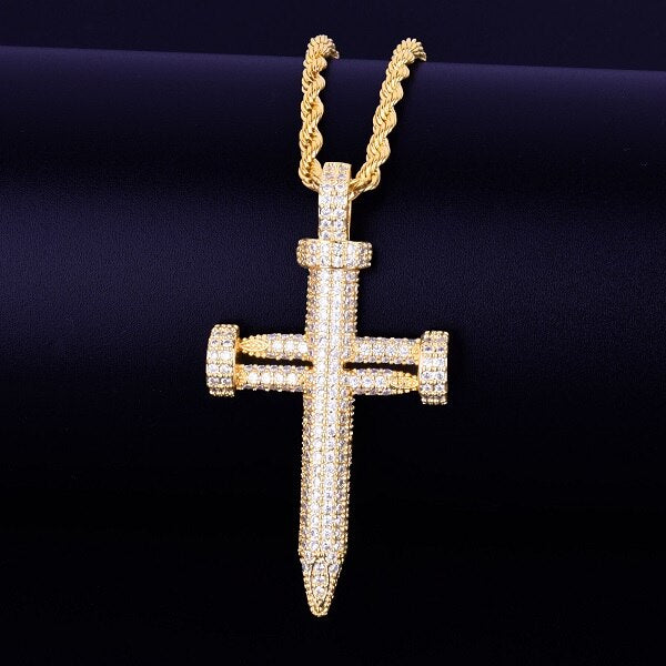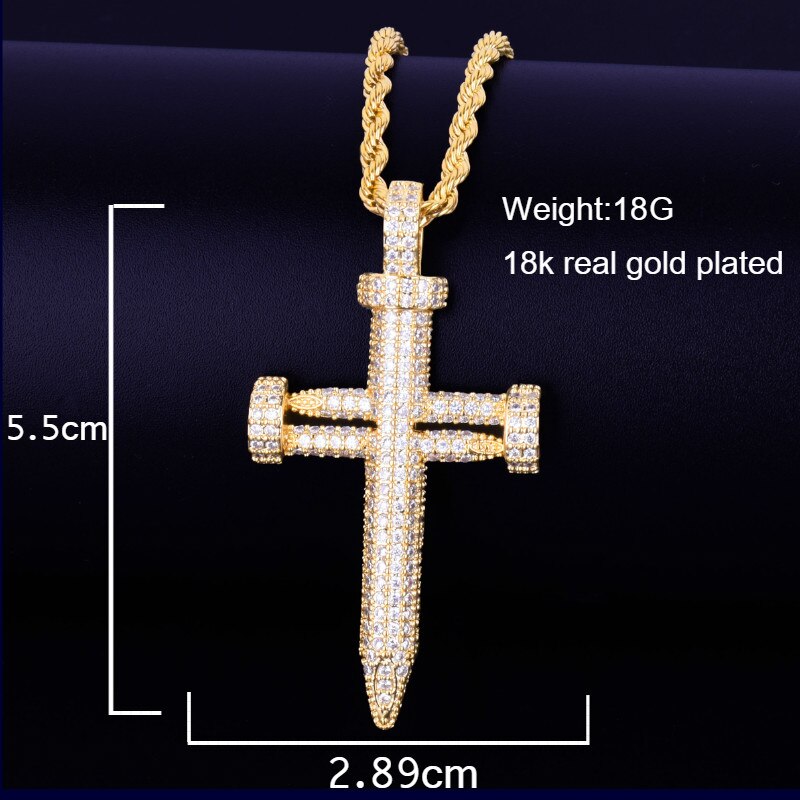 Nail Cross Pendant Necklace AAA Cubic Zircon Men's Hip Hop Street Rock Jewelry