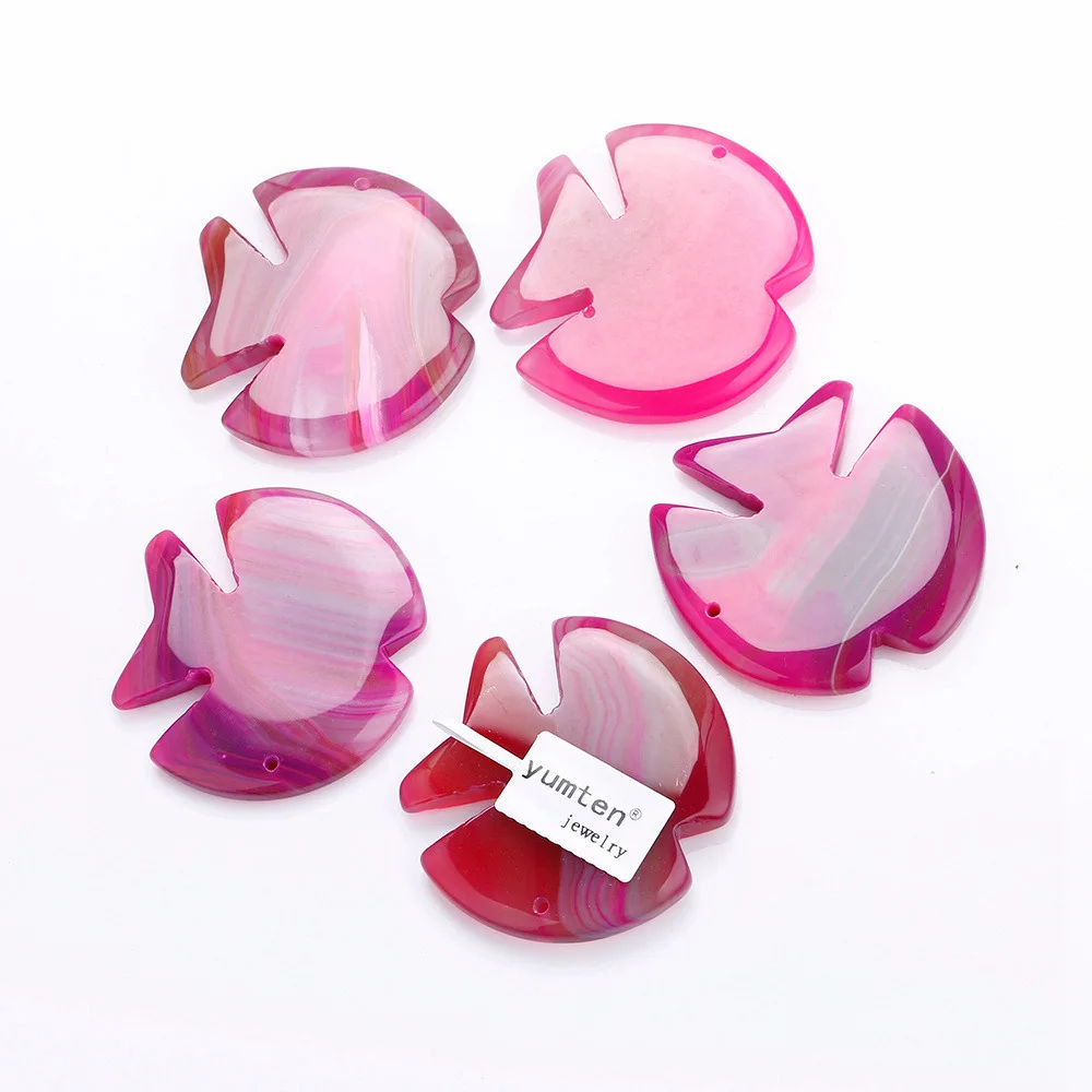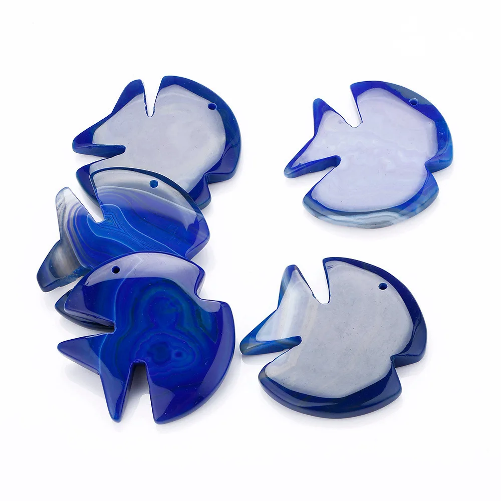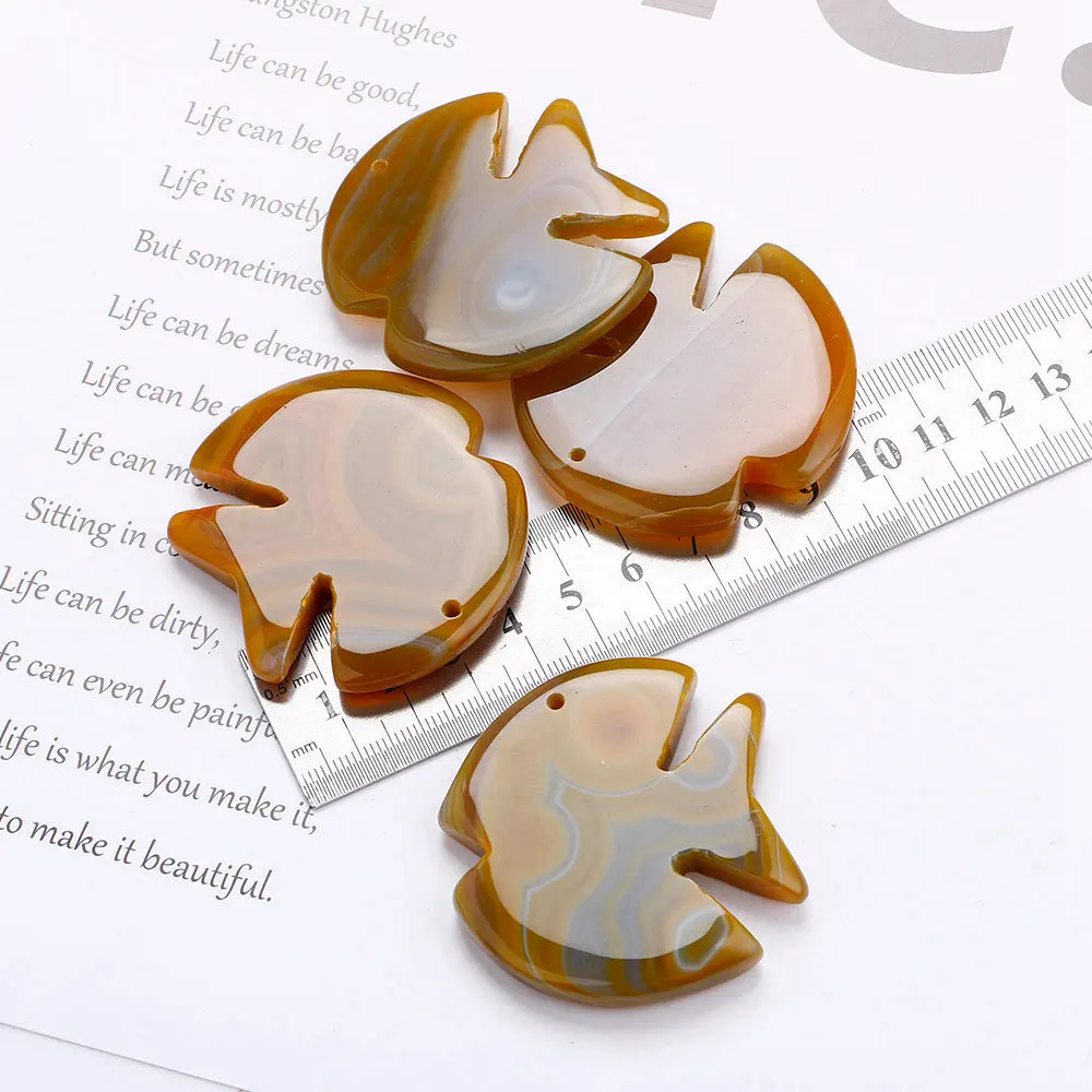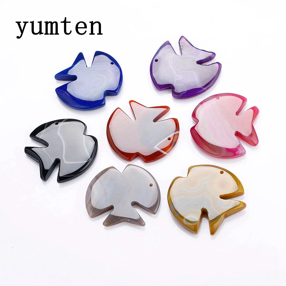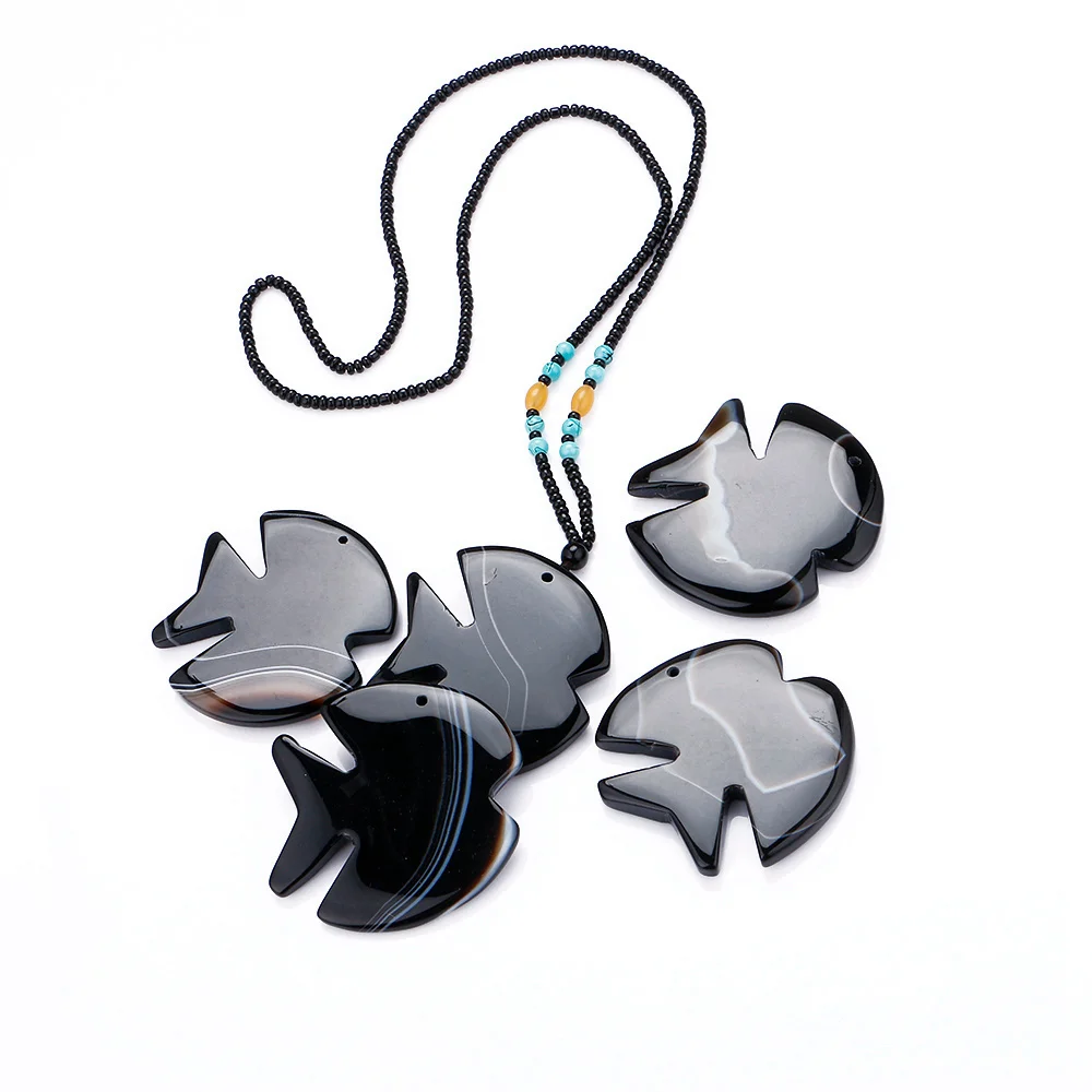 Natural Agate Fish Pendant 7 Color Long Necklace Hot Selling Round Natural Stone Beads Chain Jewelry Making Ruby Kolye Collares