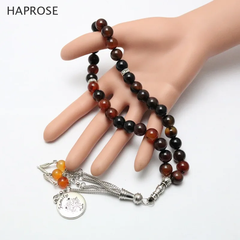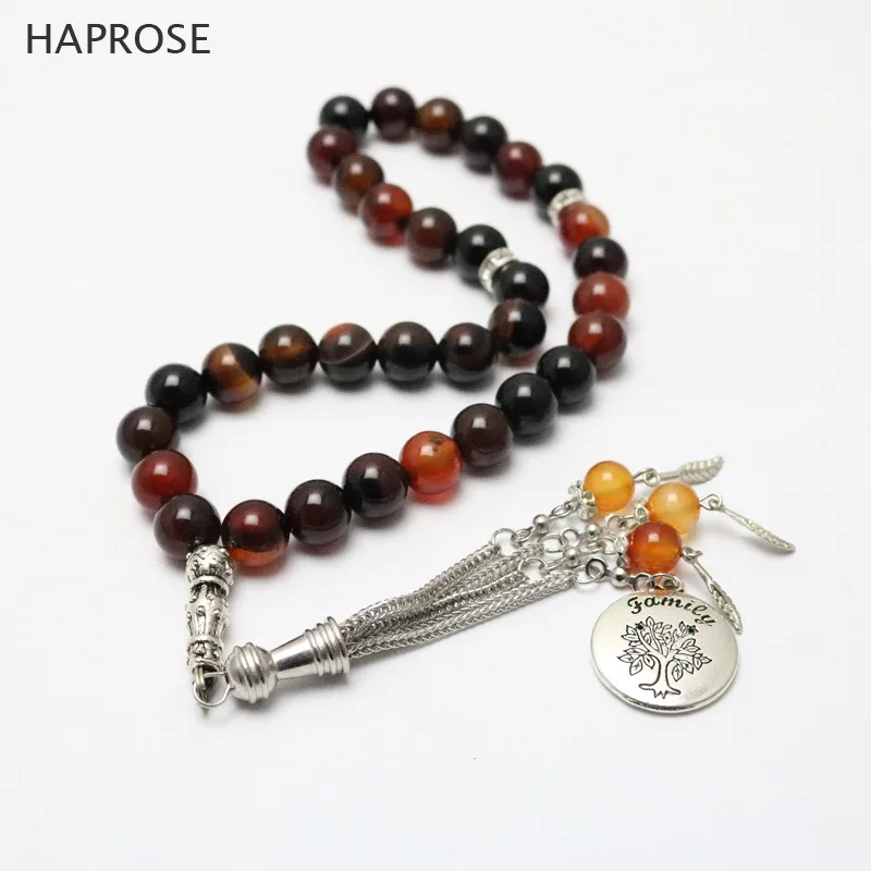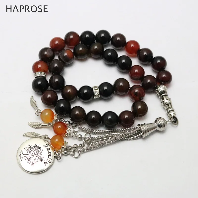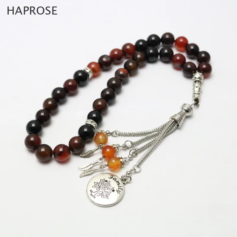 Natural brown agate Life Tree Bracelet Rosary Islamic Muslim Tasbih Allah Pendant Agate Tassel Christmas