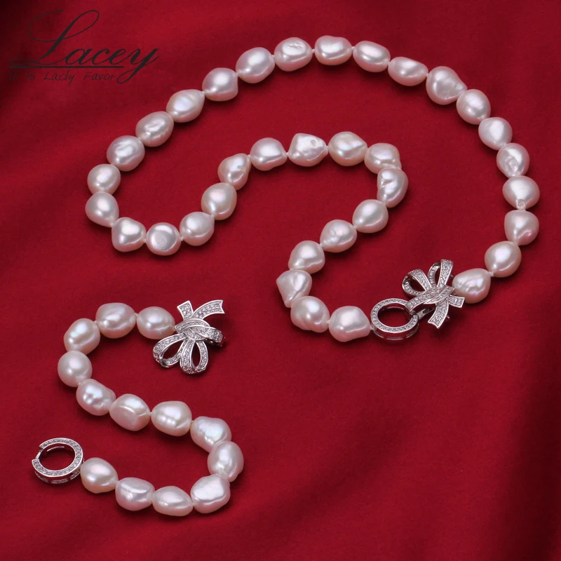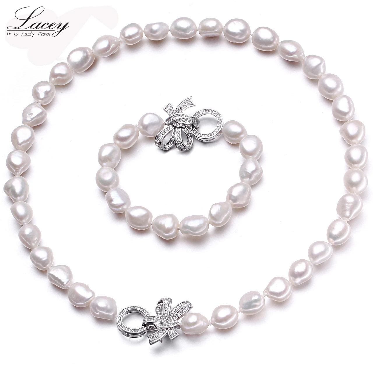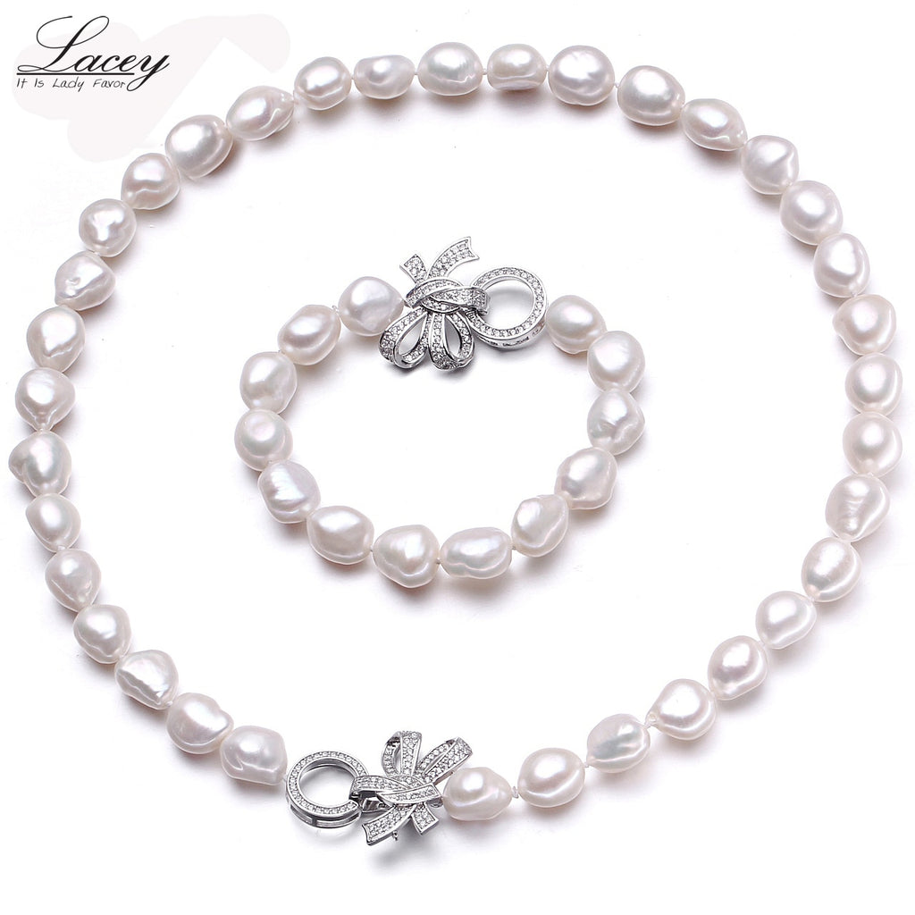 Natural cultured pearl jewelry sets women baroque10-11mm pearl sets bracelet necklace jewelry fine jewelry
