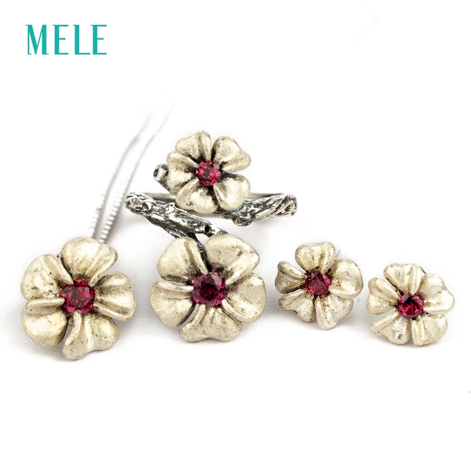 Natural garnet silver jewelry set, pendant and earring and ring, beautiful garnet color and stone fire, classical silver style