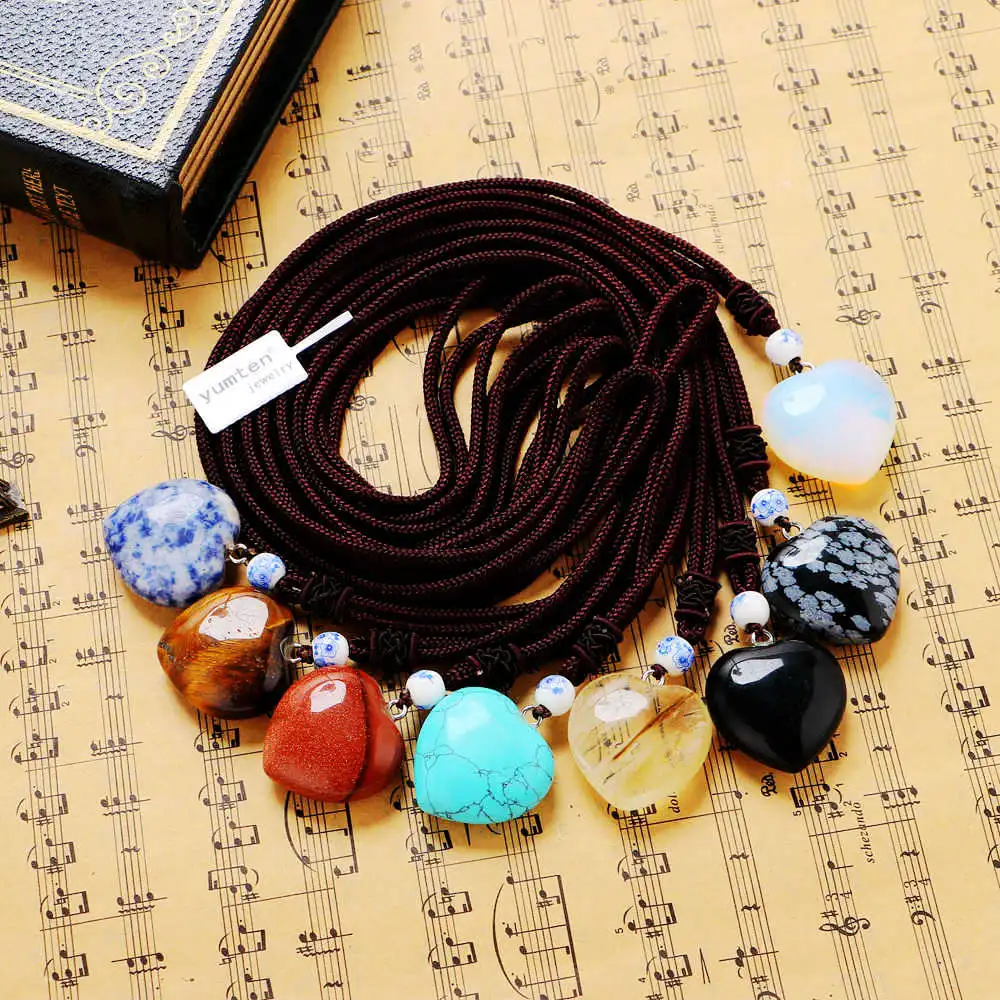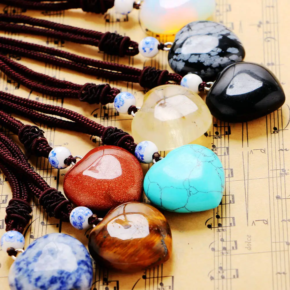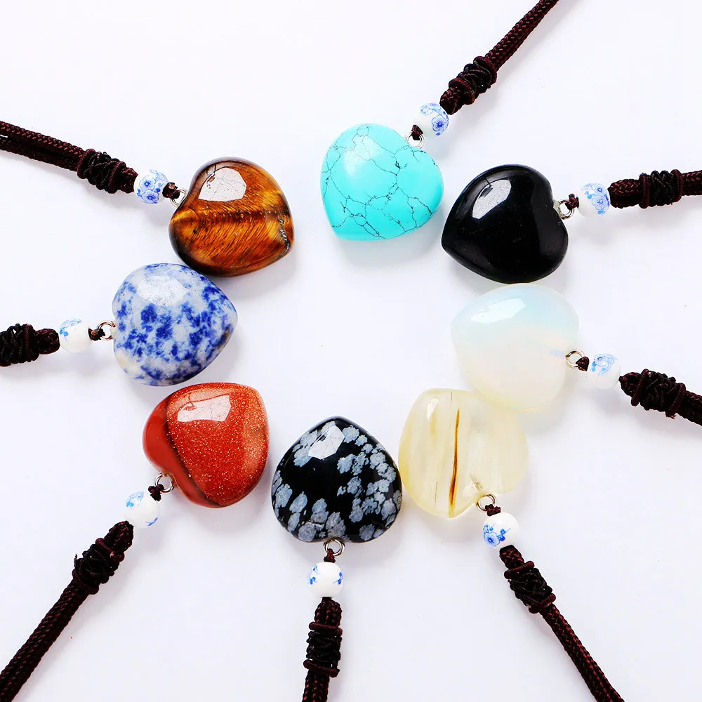 Natural Gemstone Heart Pendant Shape Pink Green Pendant Necklaces with Rose Quartz Aventurine Jewelry Gift for Woman Body Chain