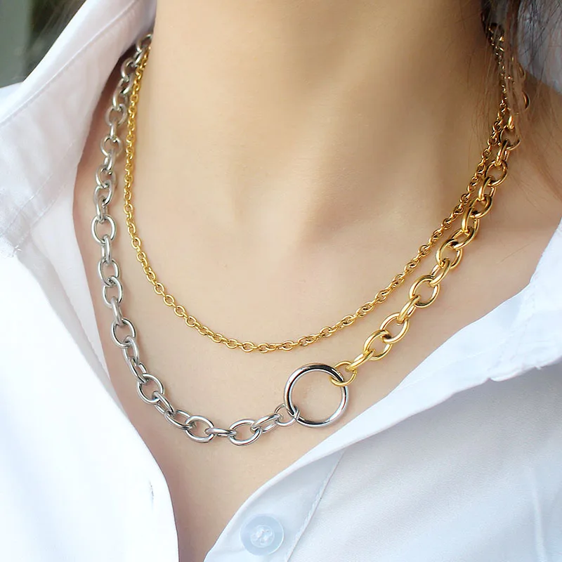 Neck Chain for Lover Chain Stainless Steel Necklaces Links Necklaces O Pendant Jewelry For Women Punk Choker Jewelry