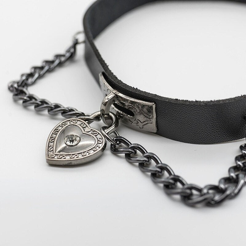 Necklace Black Peach Heart PU Leather Short Clavicle Chain Necklace for Women Girls Retro Punk Hip Hop Jewelry Gifts