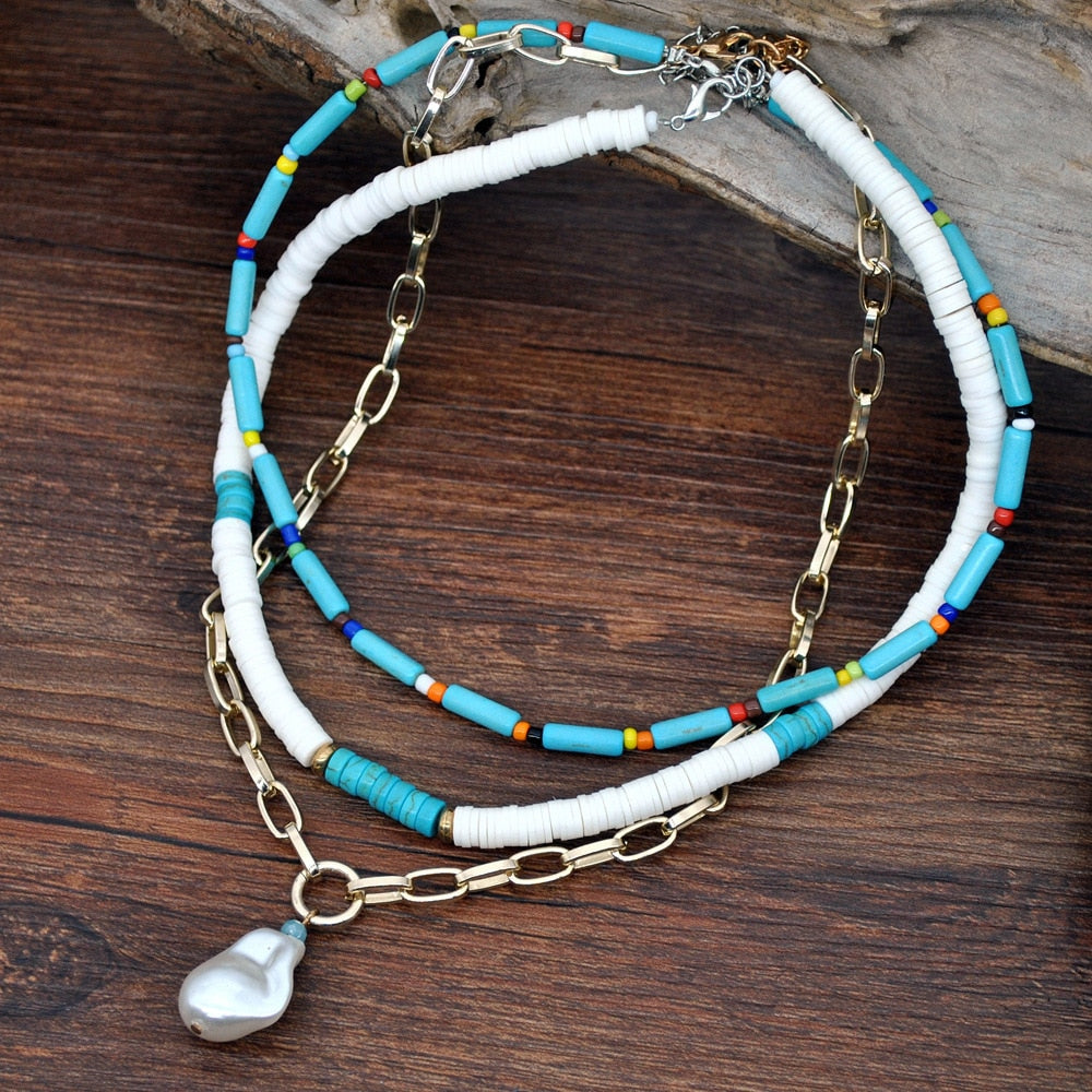 Necklace for Women Bead Pearl Bohemia Multilayer Necklace Jewelry Accessories Women Pendant Necklace