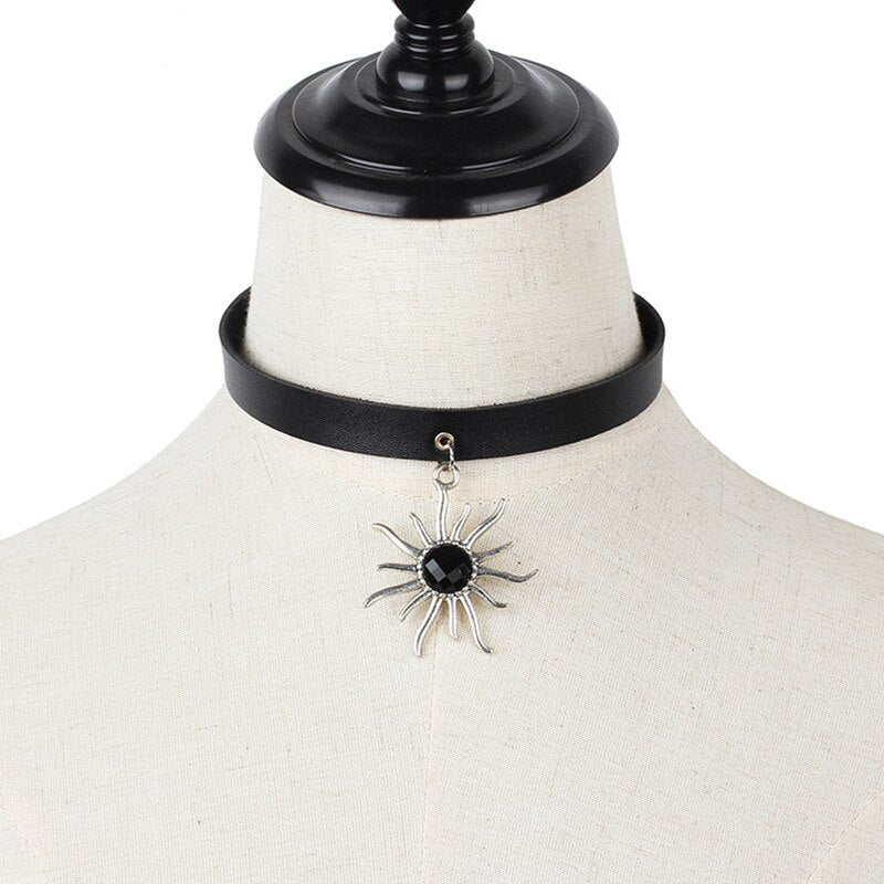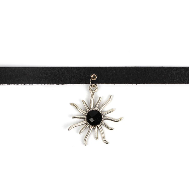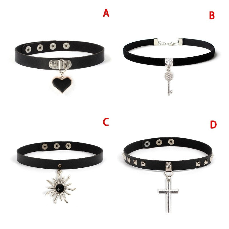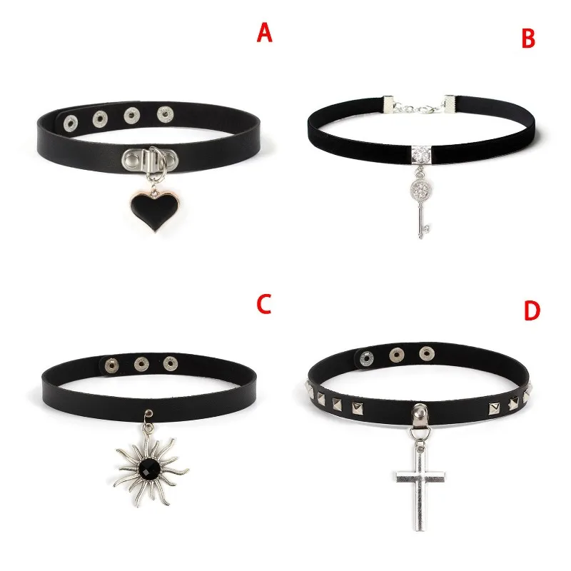 Necklace Rock Punk Jewelry Spike Choker Gothic PU Leather Cross Sun Key Heart Necklace Women Collar