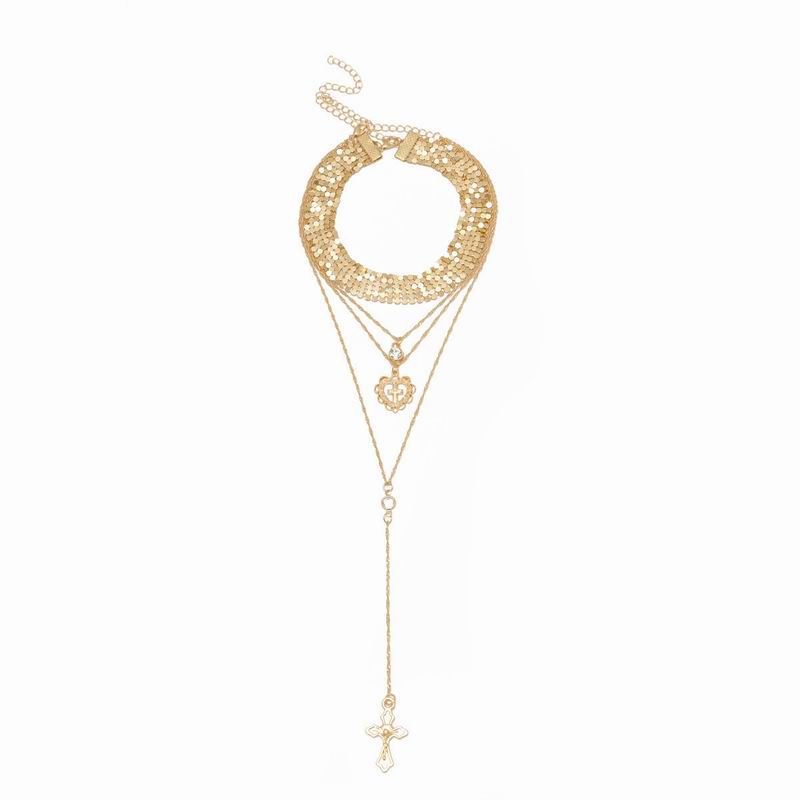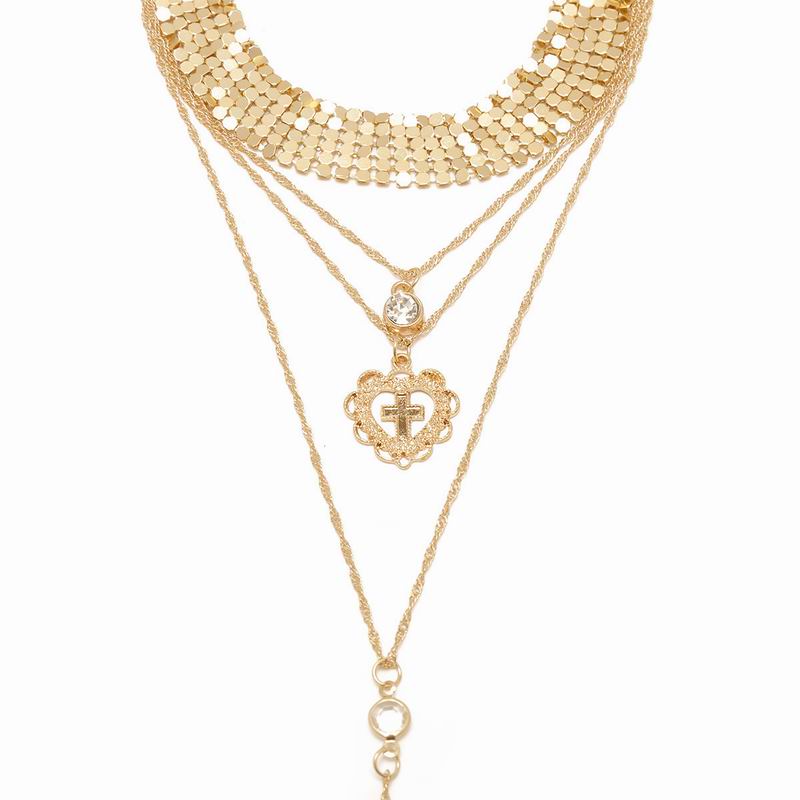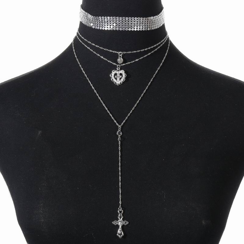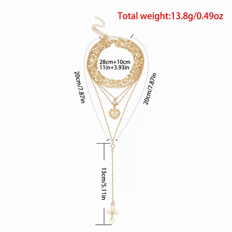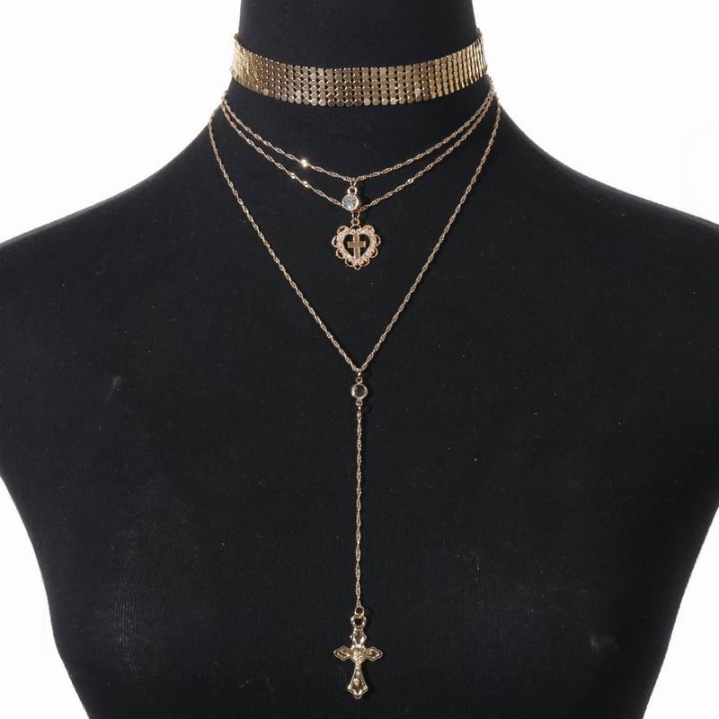 Necklaces Pendants for Women Gold Long Necklace Multilayer Exaggerated Hearts Cross Sequent Multielement Choker Necklace