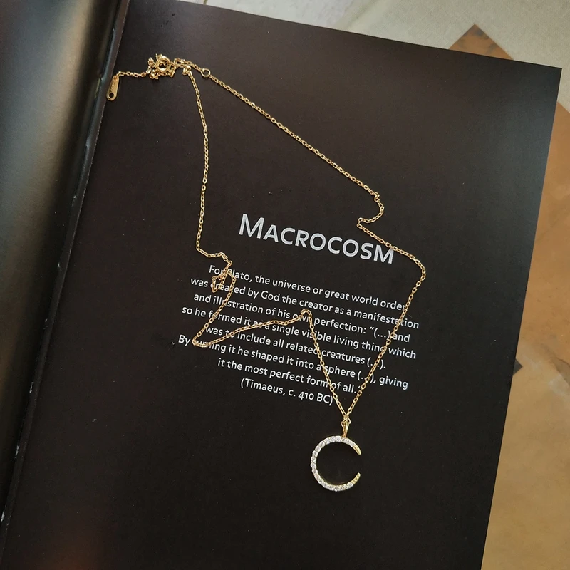 New 925 sterling silver mosaic zircon moon necklace simple trendy element design clavicular chain for women charms jewelry gift