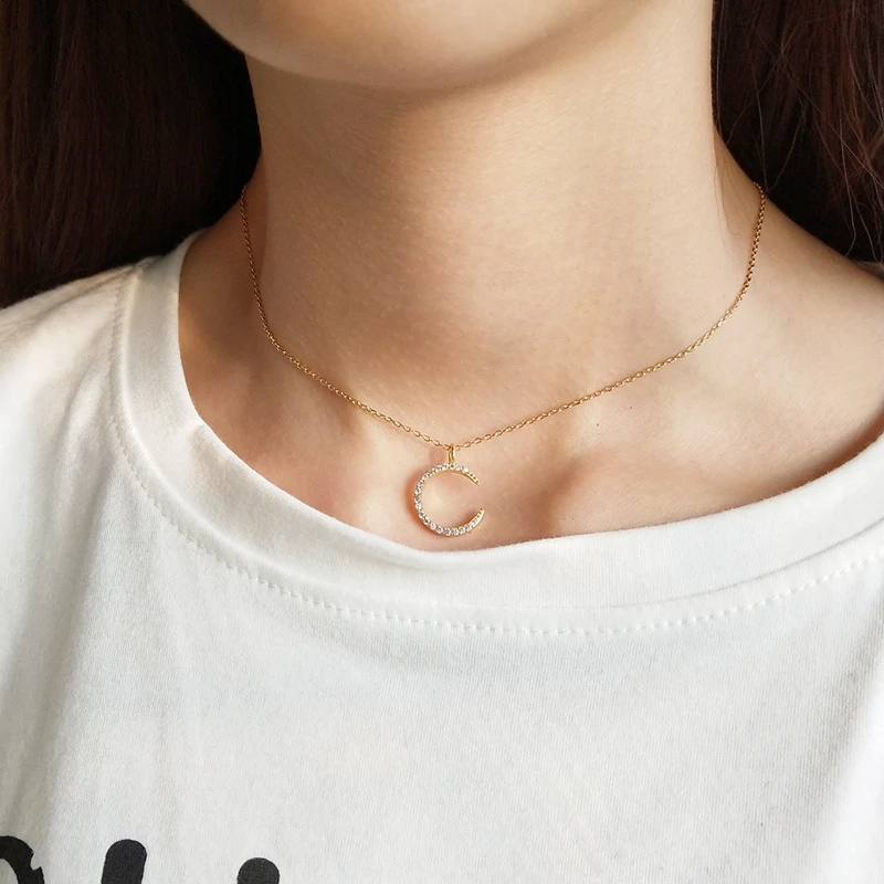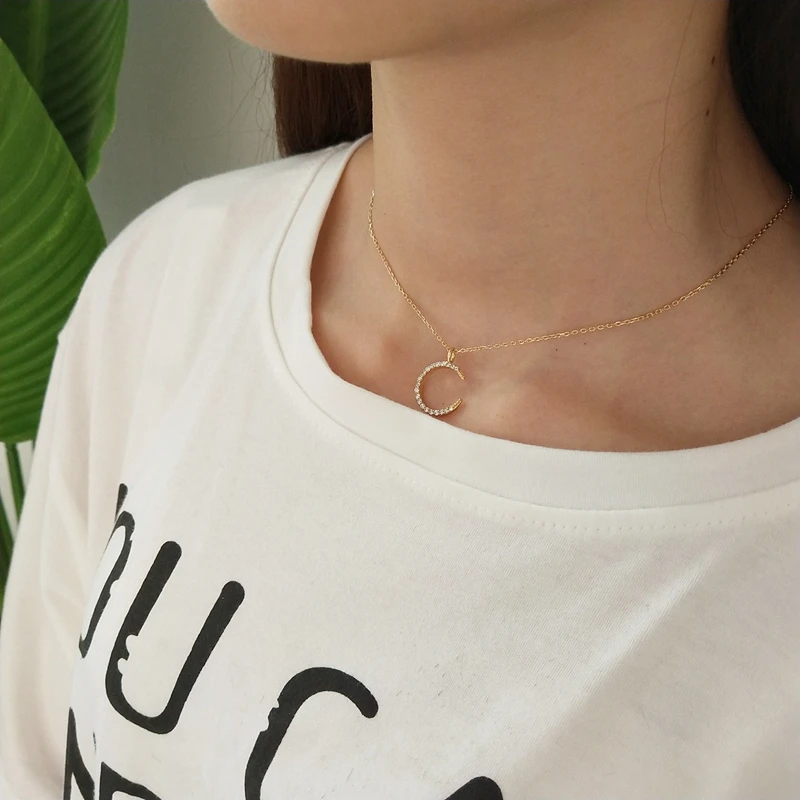 • design: zircon moon pendants necklace