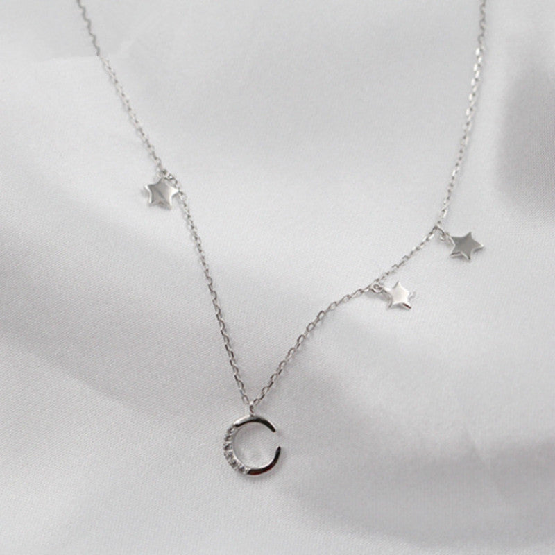 New Fashion 925 Sterling Silver Choker Necklace Hot Sale Trendy Romantic Star Moon Short Chain Women Pendant Charm Necklace