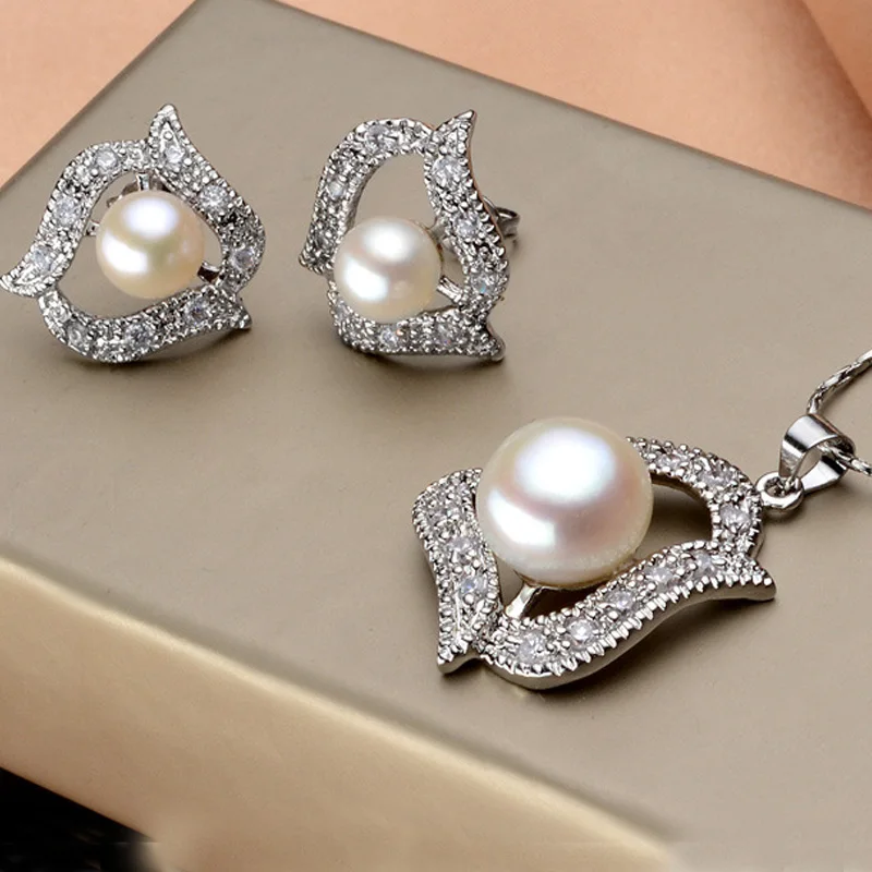 New Fashion Hot Sale Pearl Jewelry Sets Italian Charm Women Necklace Earrings Wedding Engagement Jewelry Gift Accessories