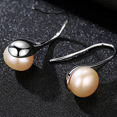 New Women's Pearl Earrings Elegant Sweet Pearl Pendant Earrings 925 Silver Jewelry White/Black/Pink Pearl