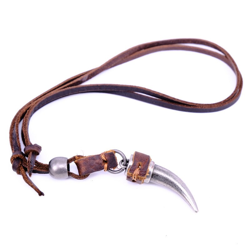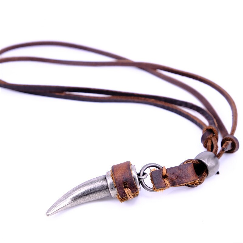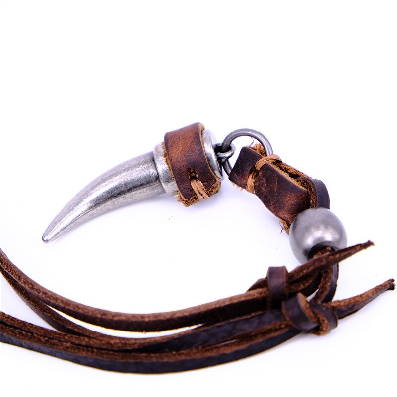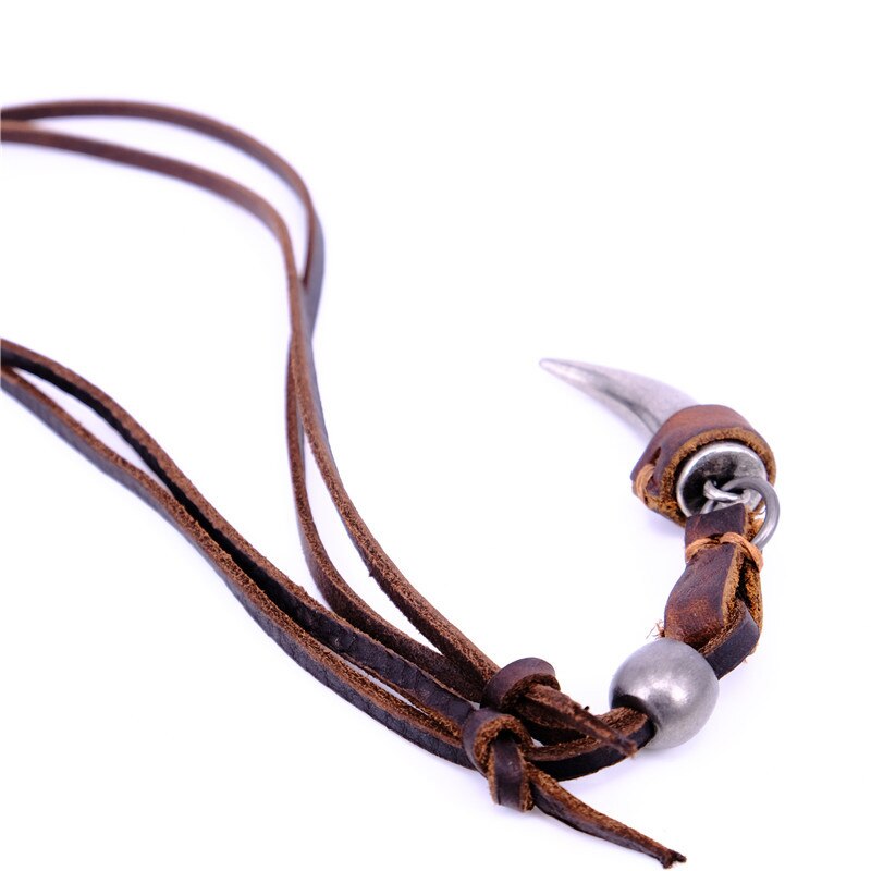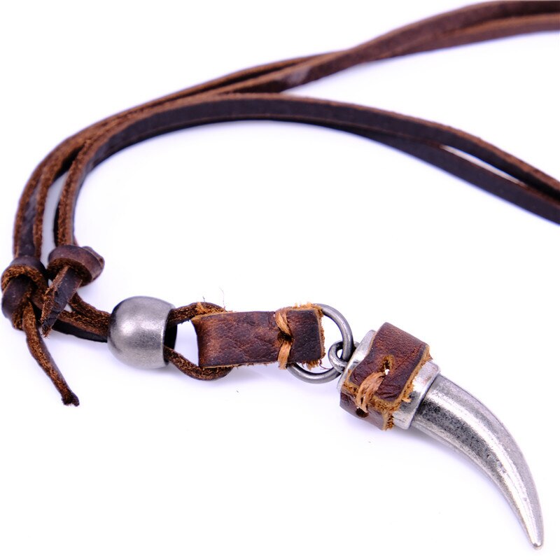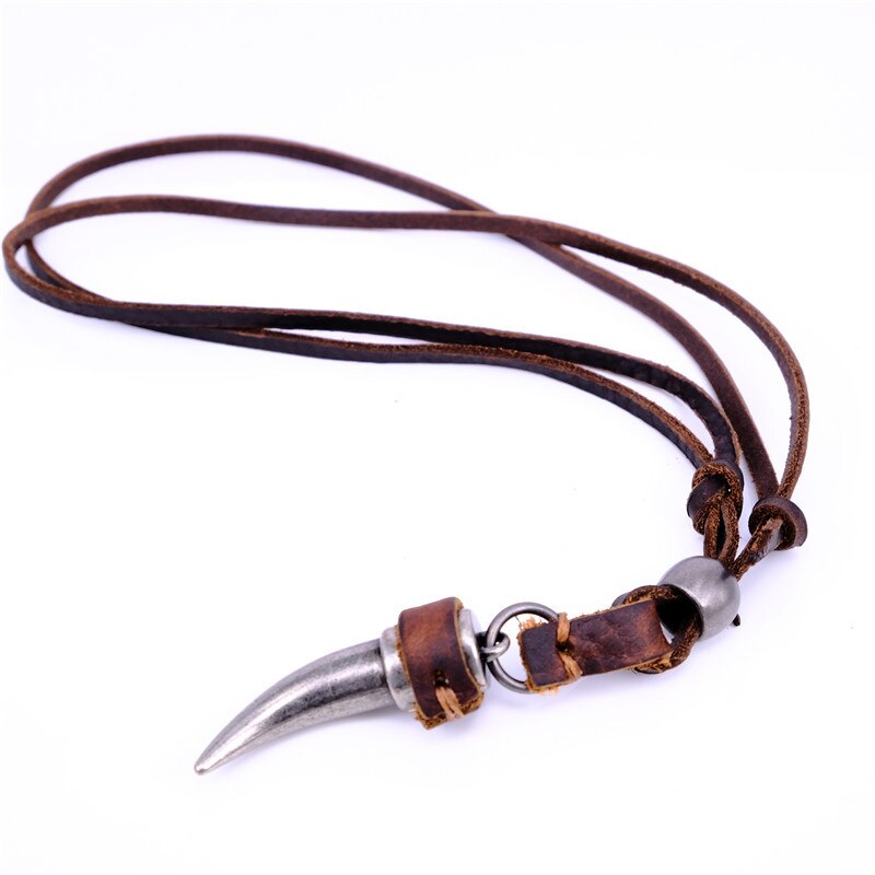 NIUYITID Horn Pendant Necklace Men Brown Genuine Leather Necklace Jewellery Manmade Ethnic Charm Accessories Drop Shipping