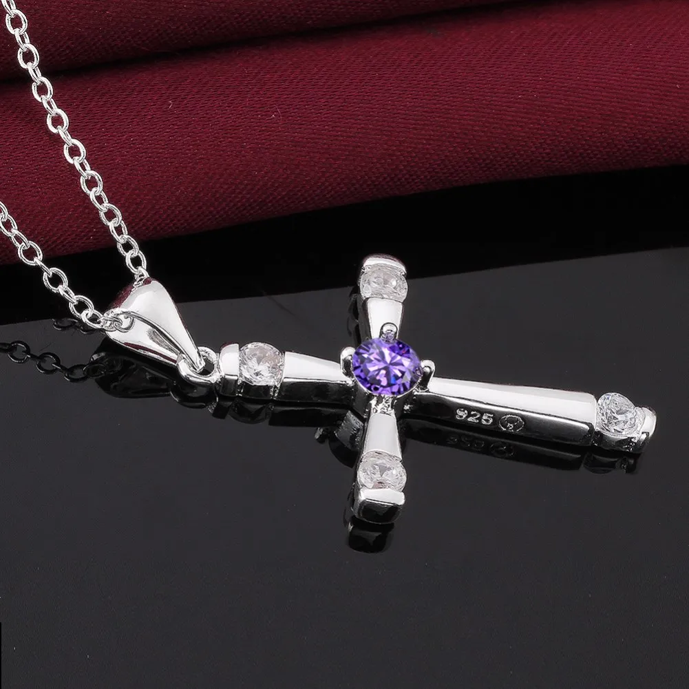 Noble 925 Stamped Silver cross Pendant diamond Necklace For Women Holiday gifts designer party wedding crystals Jewelry