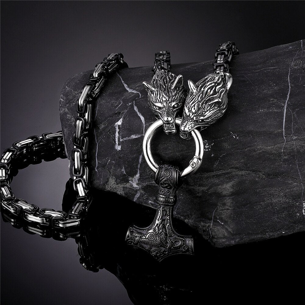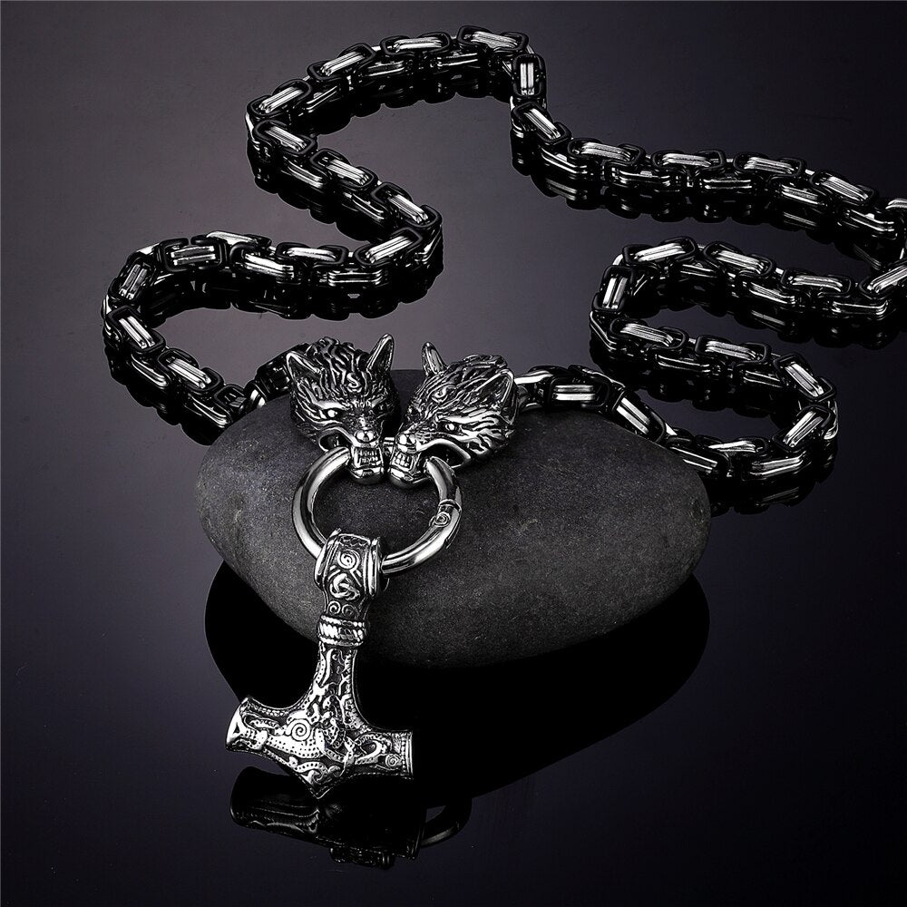 Theme : Stainless Steel Viking Thor Hammer Celtic Wolf Necklaces Pendant