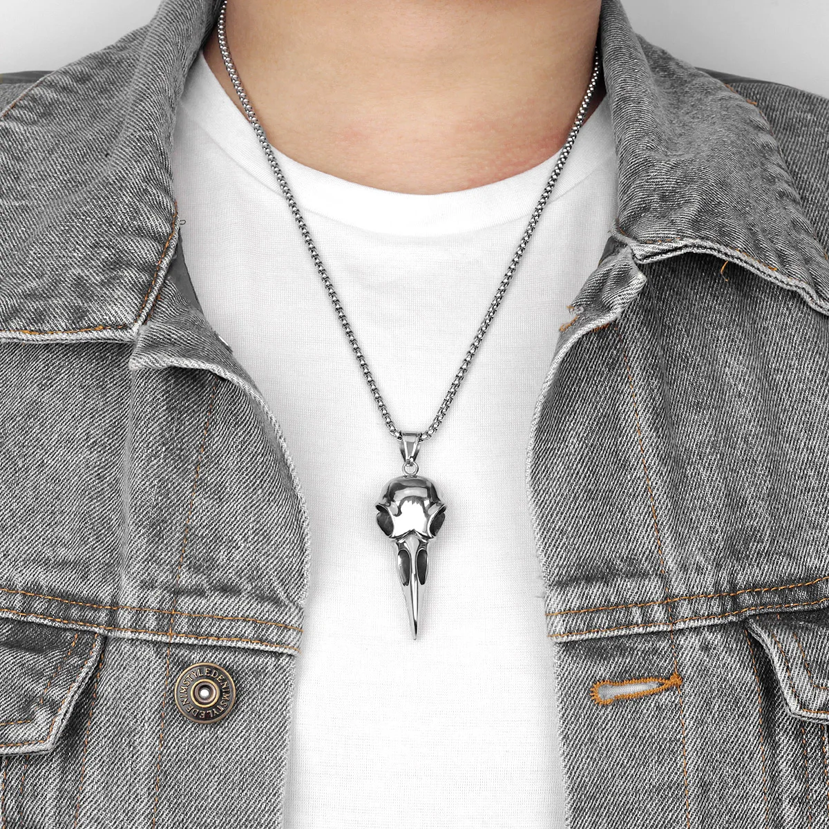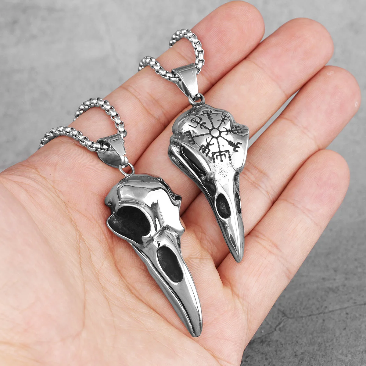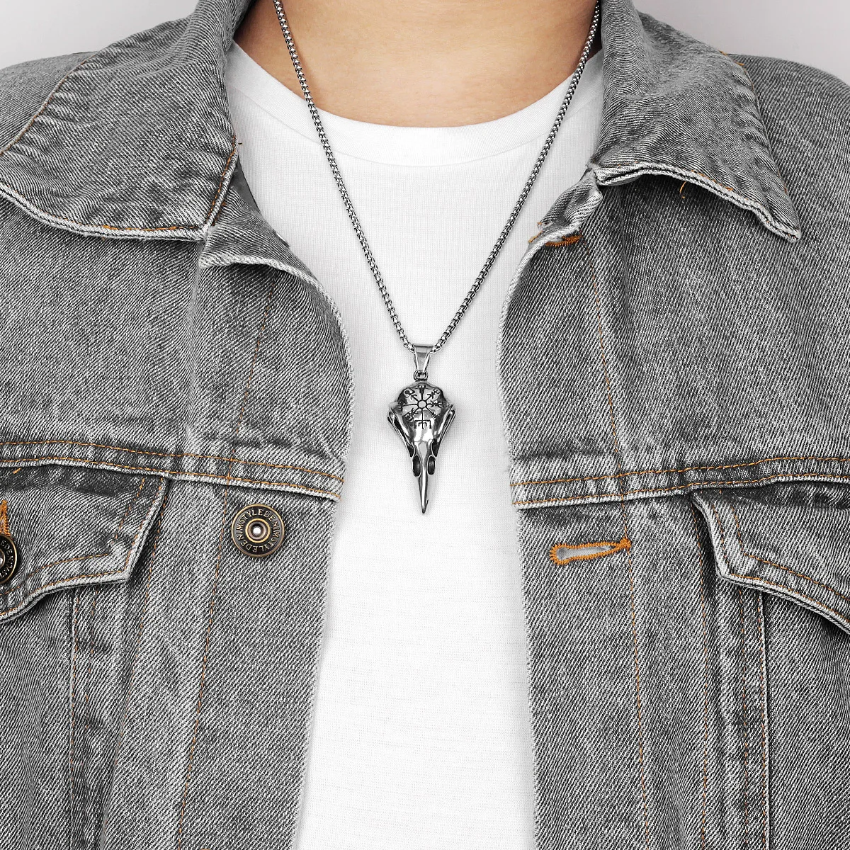 Nordic Viking Crow Skull Stainless Steel Men Necklaces Pendants Chain Punk for Boyfriend Male Jewelry Creativity Gift