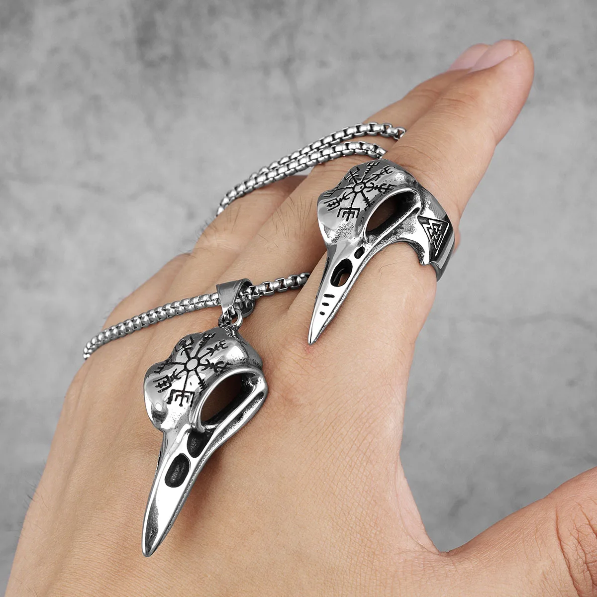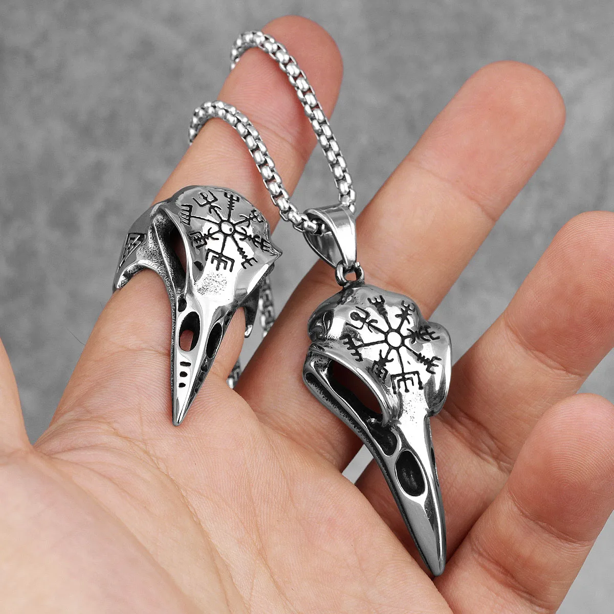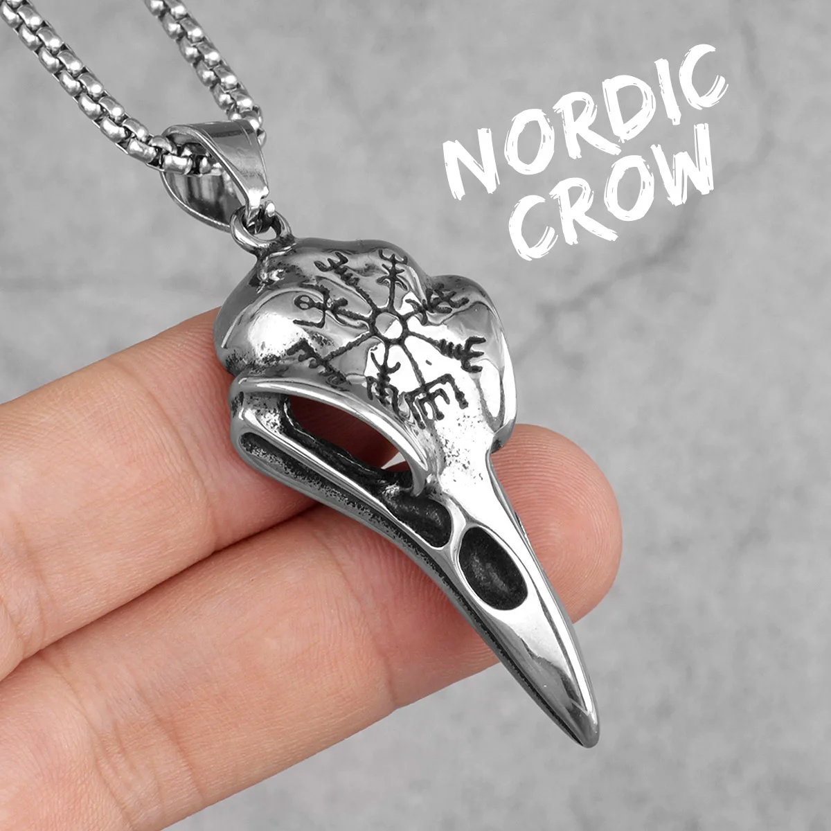 Nordic Viking Crow Skull Stainless Steel Men Necklaces Pendants Chain Punk for Boyfriend Male Jewelry Creativity Gift
