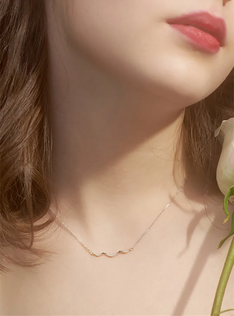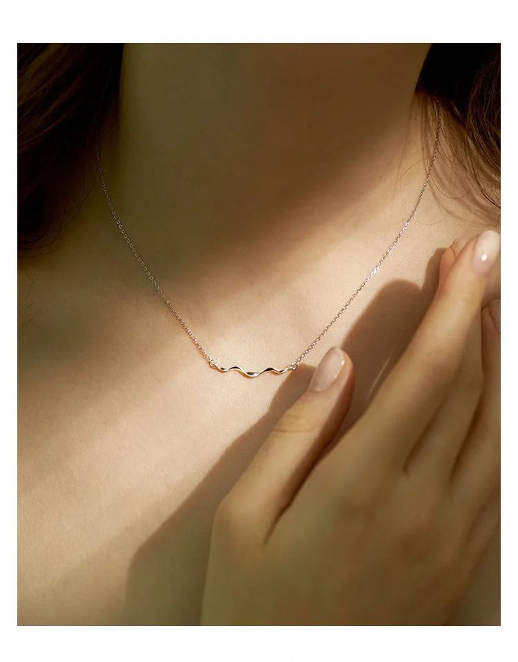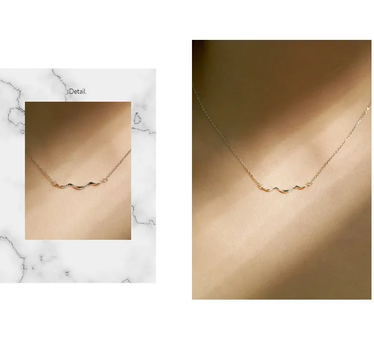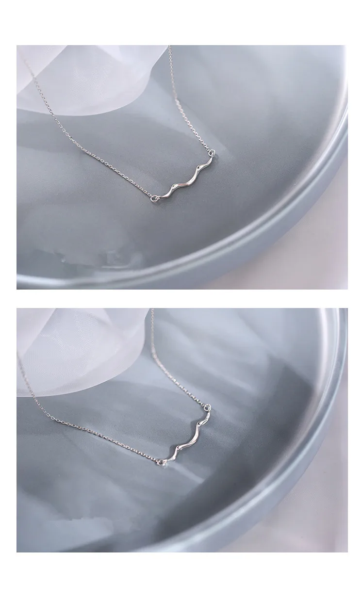 OBEAR Silver Chain Necklace Simple Coastline Wave Silver Plated Necklace Korean Style Woman Boho Necklace Ladies Jewelry