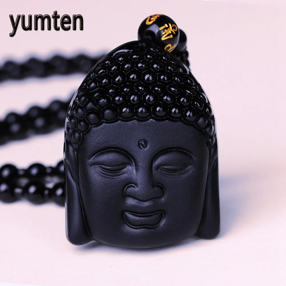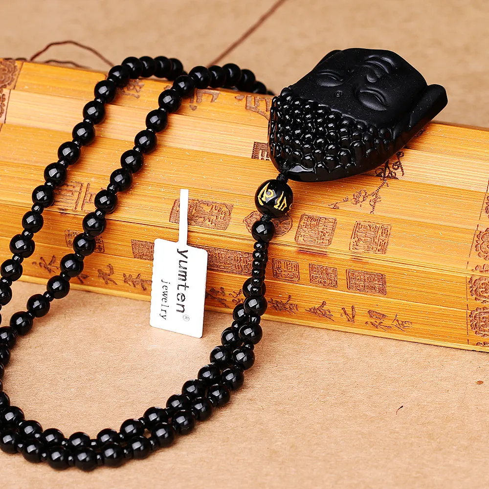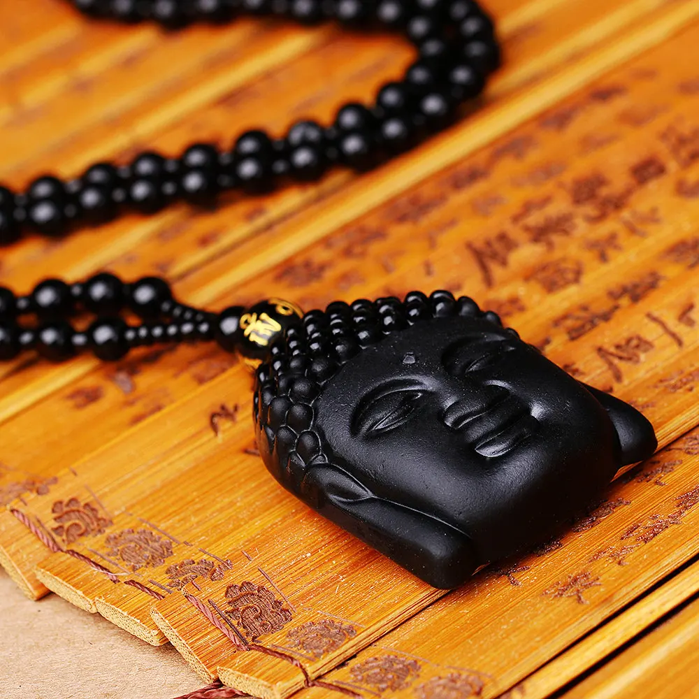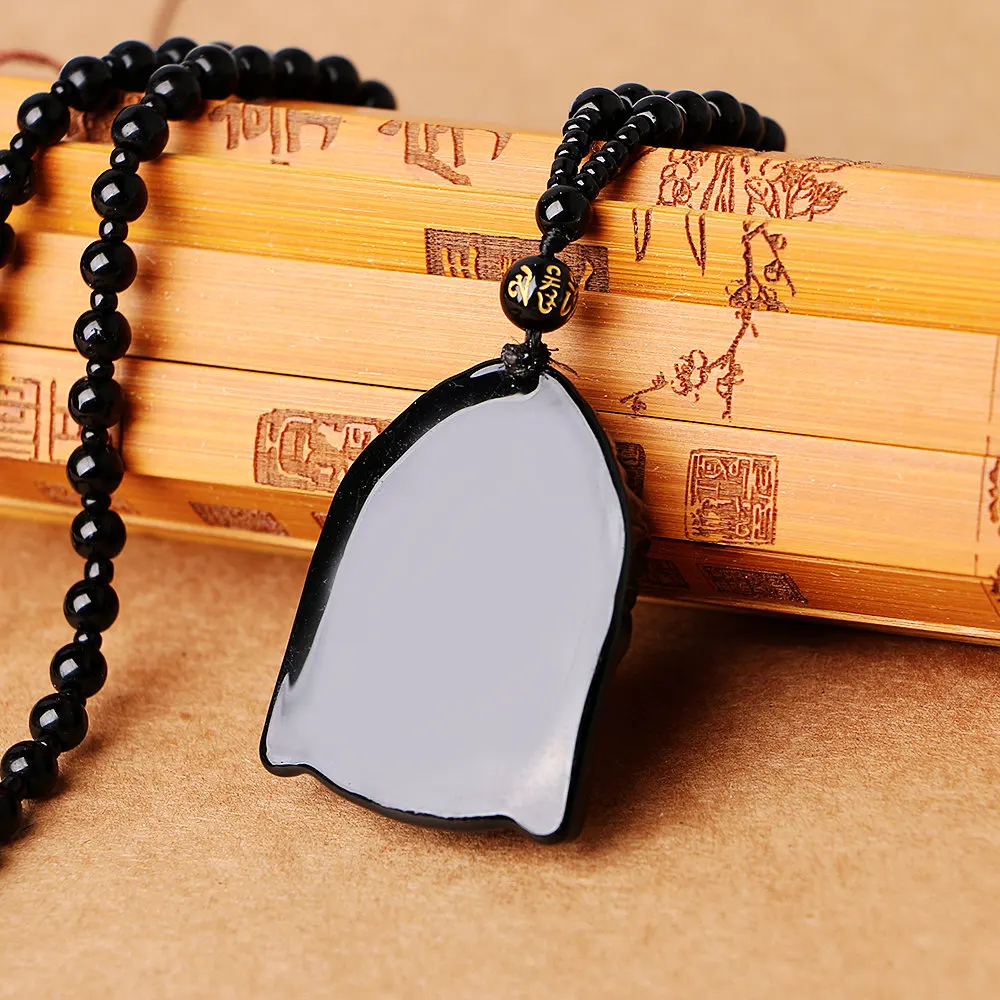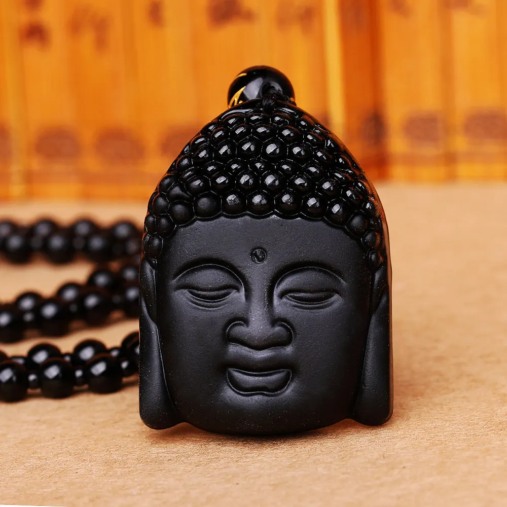 Obsidian Necklace Natural Stone Wolf head Pendant Buddha Guardian Ball Chain Carving Amulet With Obsidian Blessing Lucky Jewelry