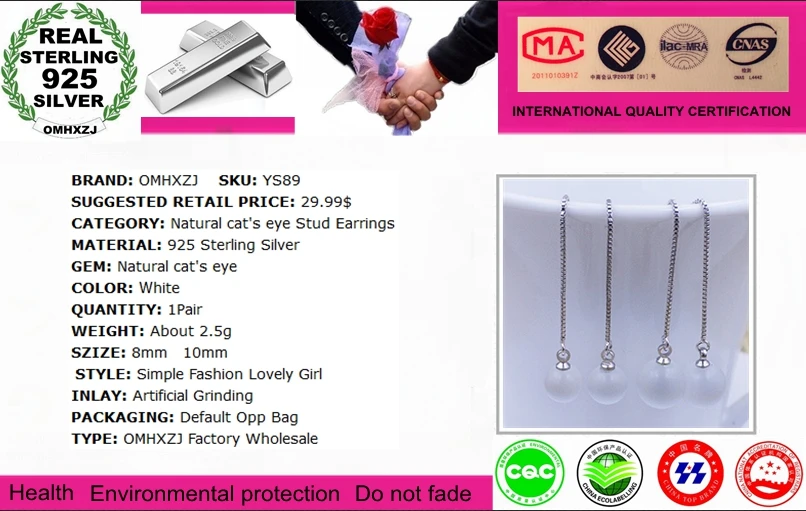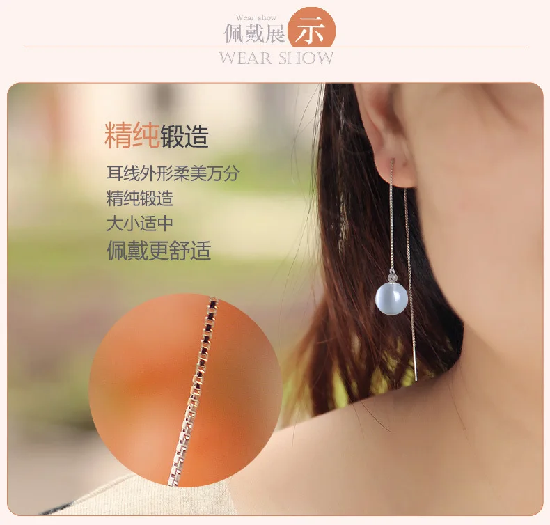 Fashion jewelry translucent cat eyes opals 925 Sterling Silver Earrings Long pendant Ears hang YS89